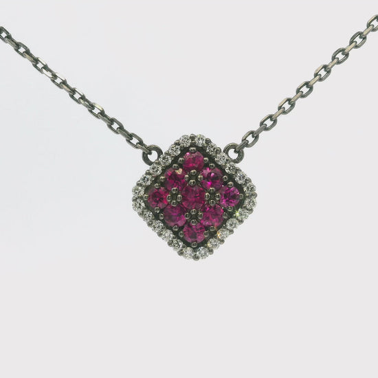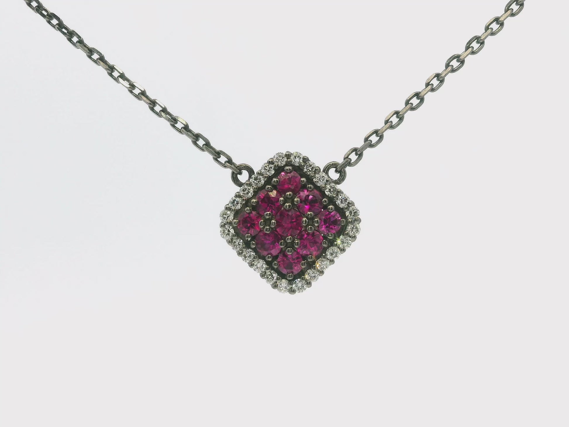 This stunning 0.18CT Diamond and 0.48CT Ruby pendant is crafted in 14k white gold. The sparkling diamonds and deep red rubies make this pendant a classic and timeless addition to any jewelry collection. Elevate your style with this luxurious and elegant piece.