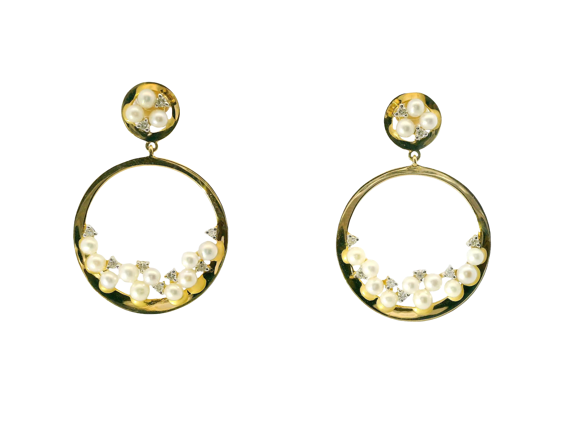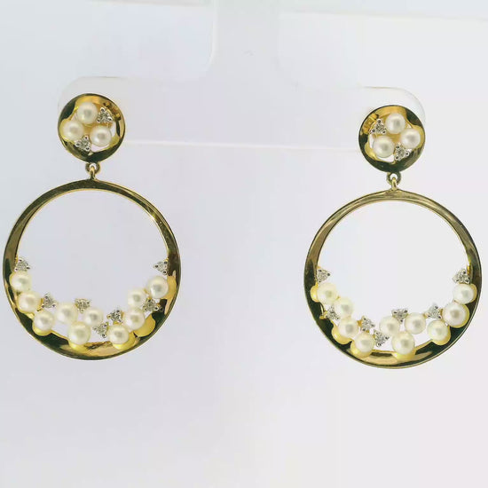 These 0.18CT diamond and 14k gold pearl earrings showcase expert craftsmanship, blending the classic allure of pearls with the brilliance of diamonds. Crafted in 14k gold, they provide a sophisticated and timeless accessory that enhances any look with subtle luxury and enduring quality.