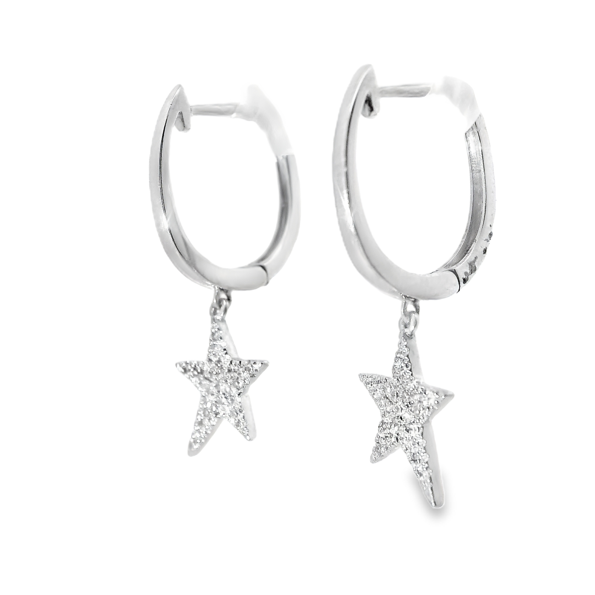 Crafted in 14k white gold, this star-shaped earring features a 0.18-carat diamond that offers subtle brilliance and refined elegance. Its expert design balances timeless style with everyday wearability, making it a sophisticated choice for those seeking understated luxury.
