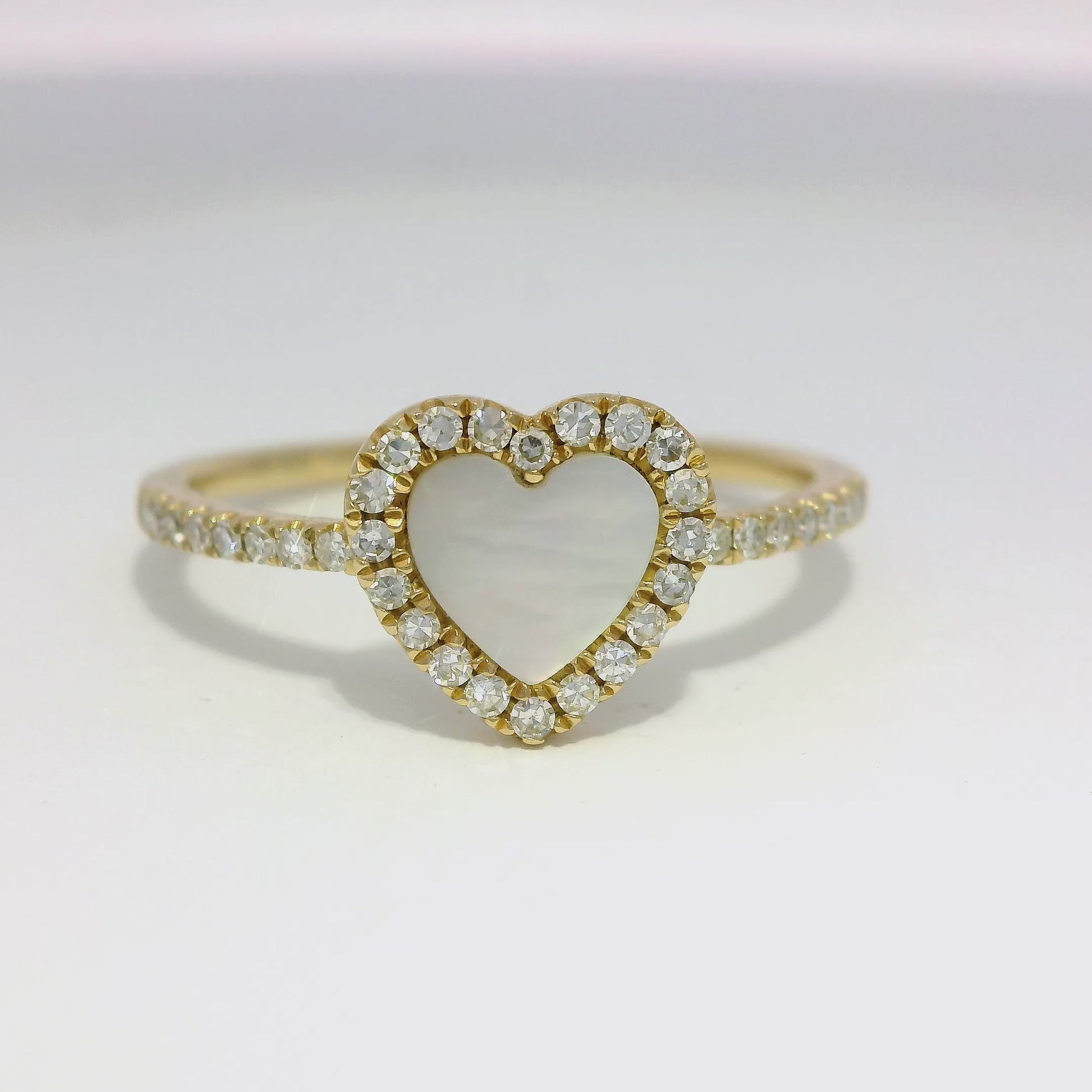 0.18CT Diamond Heart Ring with 0.36CT Mother of Pearl 14K Yellow Gold