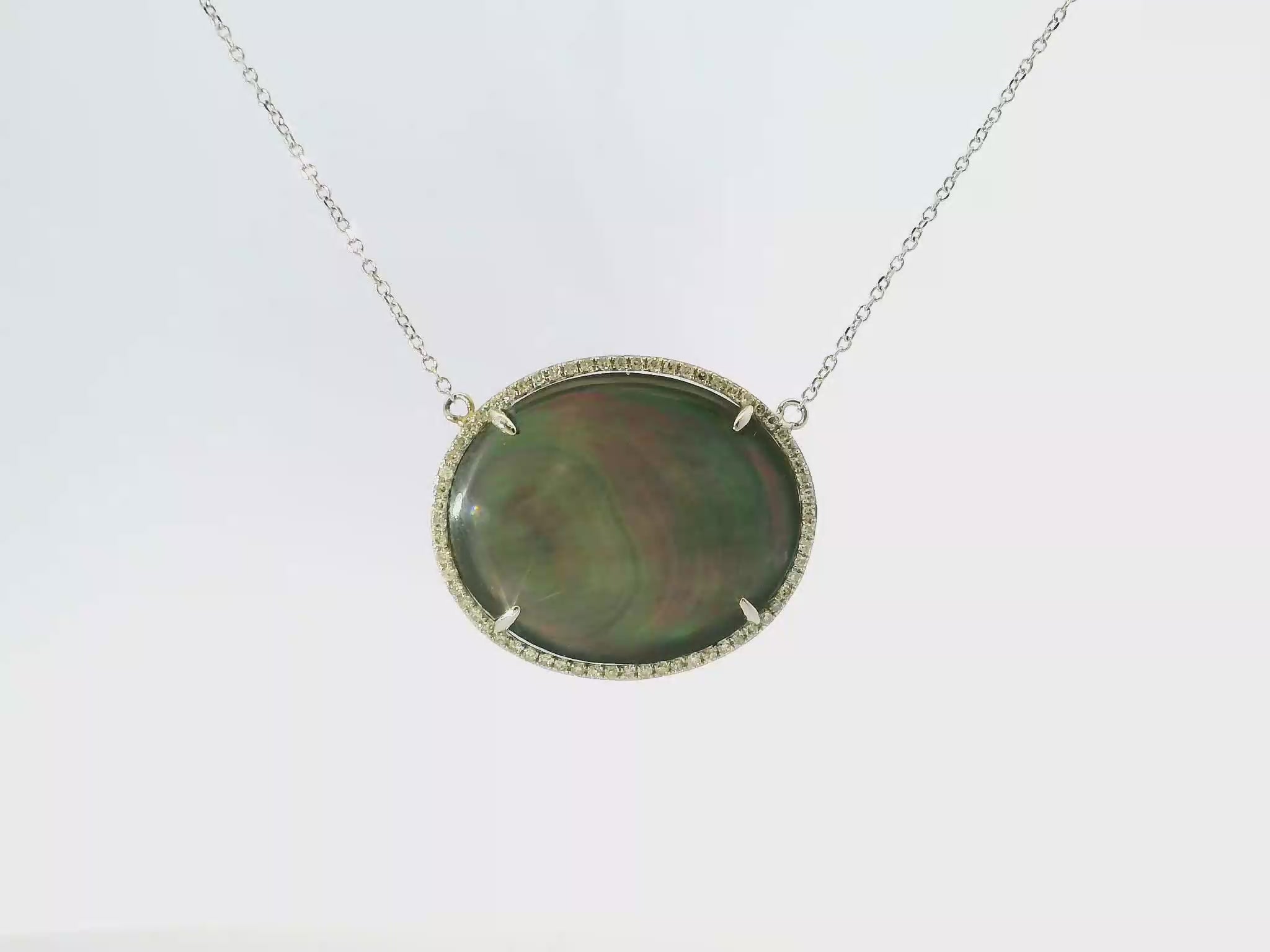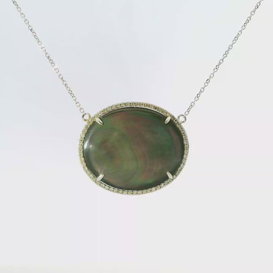 0.19CT Diamond and 11.22CT Black Mother of Pearl 14k White Gold Pendant