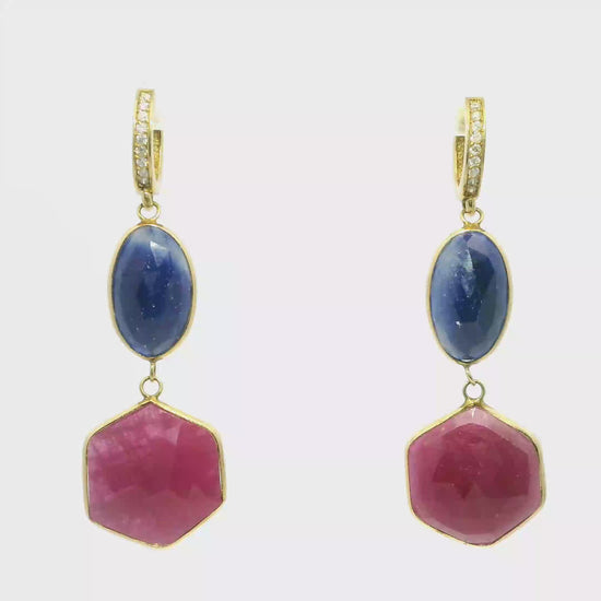 0.20CT Diamond with Pink and Blue Sapphire 14k Yellow Gold Earring