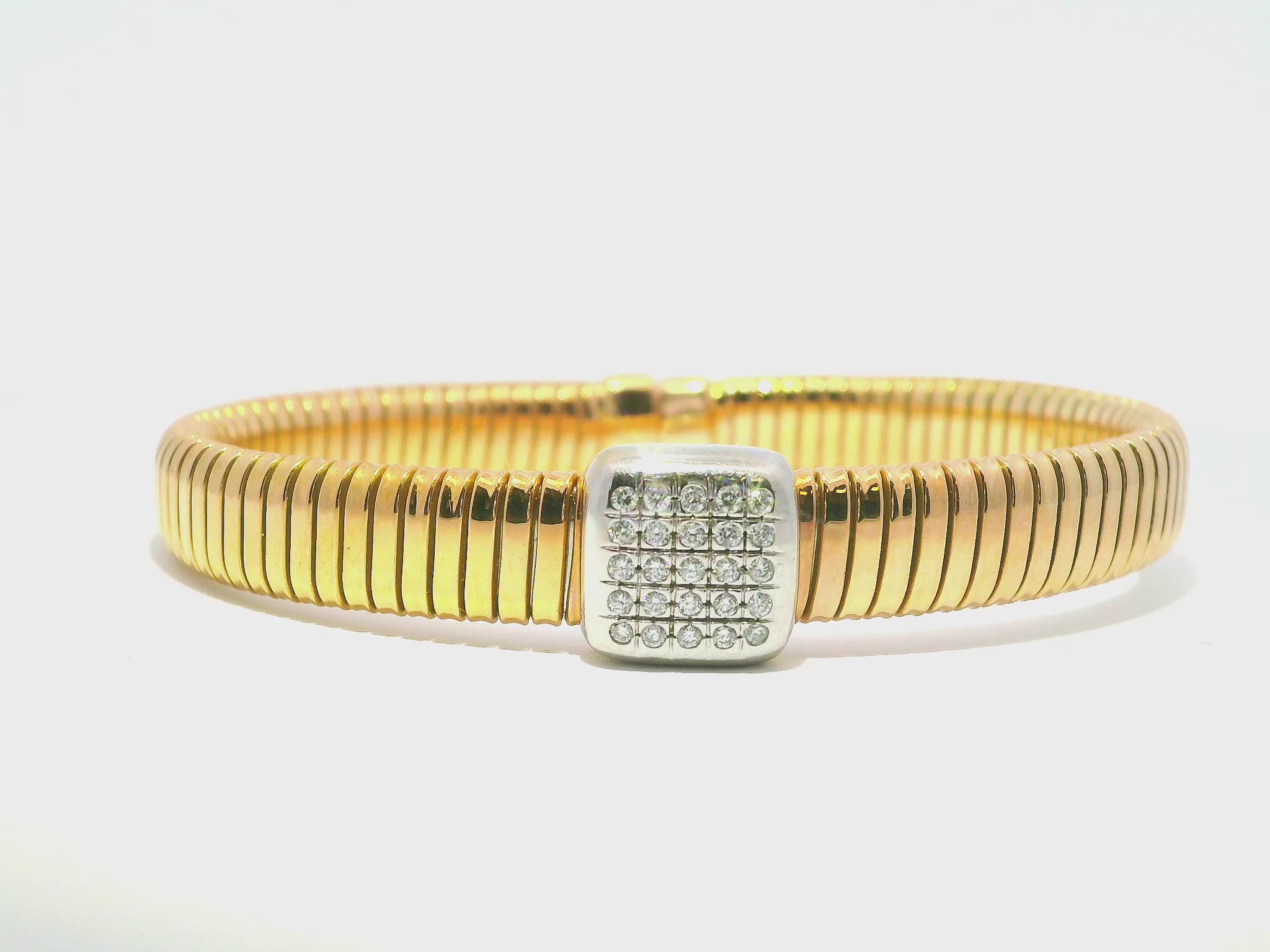 Expertly crafted 0.21CT diamond bangle in 14k rose gold. Diamonds provide timeless elegance and versatility, while 14k rose gold adds a touch of warmth. Perfect for any occasion and a stunning addition to any jewelry collection.