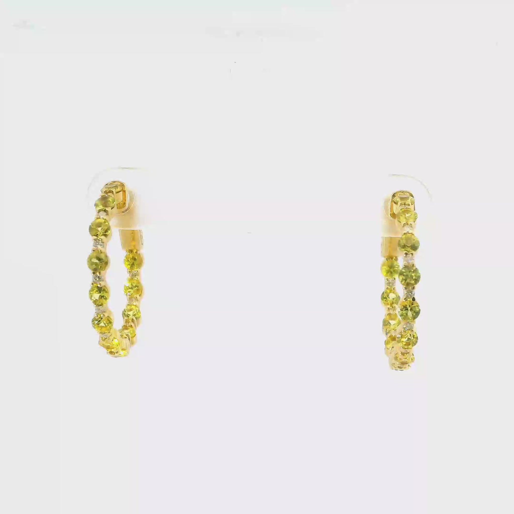 0.22CT Diamond 2.20CT Yellow Sapphire HOOP 14k Yellow Gold Earring