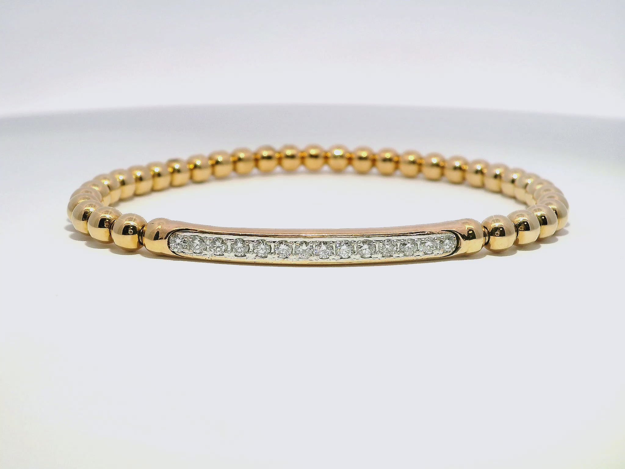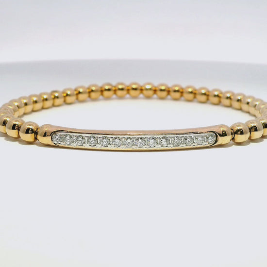 0.22CT Diamond ID Plain Beads Stretch Bangle 14k Rose Gold