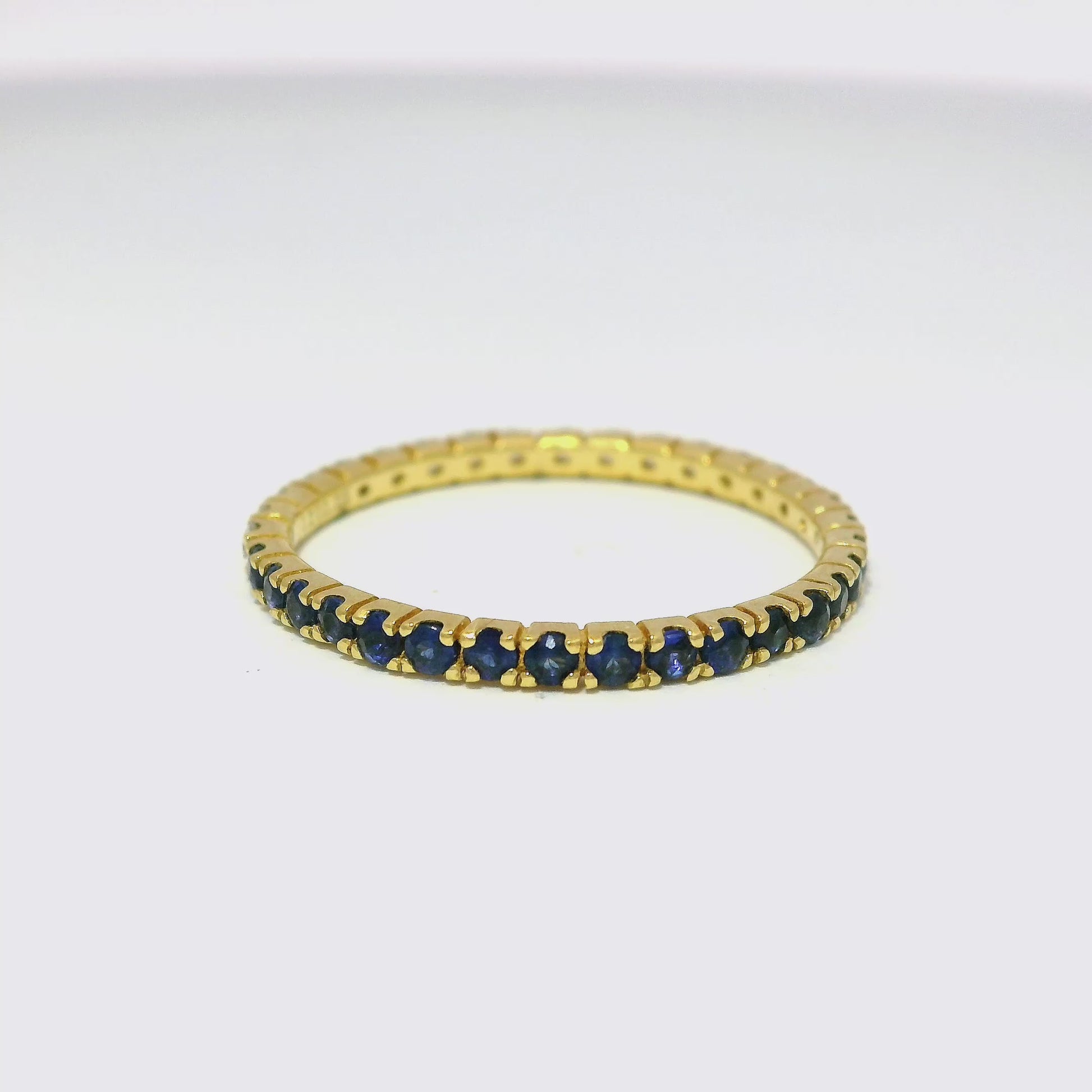 0.25CT Diamond & 0.29CT Blue Sapphire Ring 18k Yellow Gold