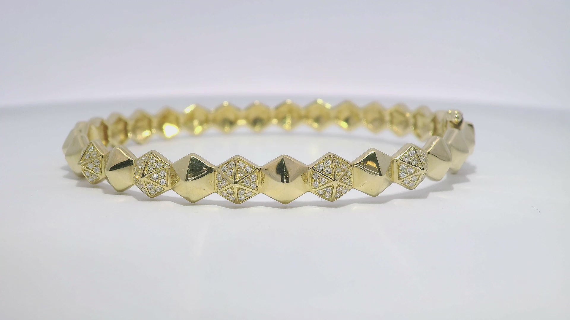 This 0.25CT diamond bangle showcases exquisite craftsmanship and classic elegance in its 14k yellow gold setting. With its striking glitter and luxurious finish, this bangle is the perfect addition to any jewelry collection. Elevate any outfit and make a statement with this stunning piece.