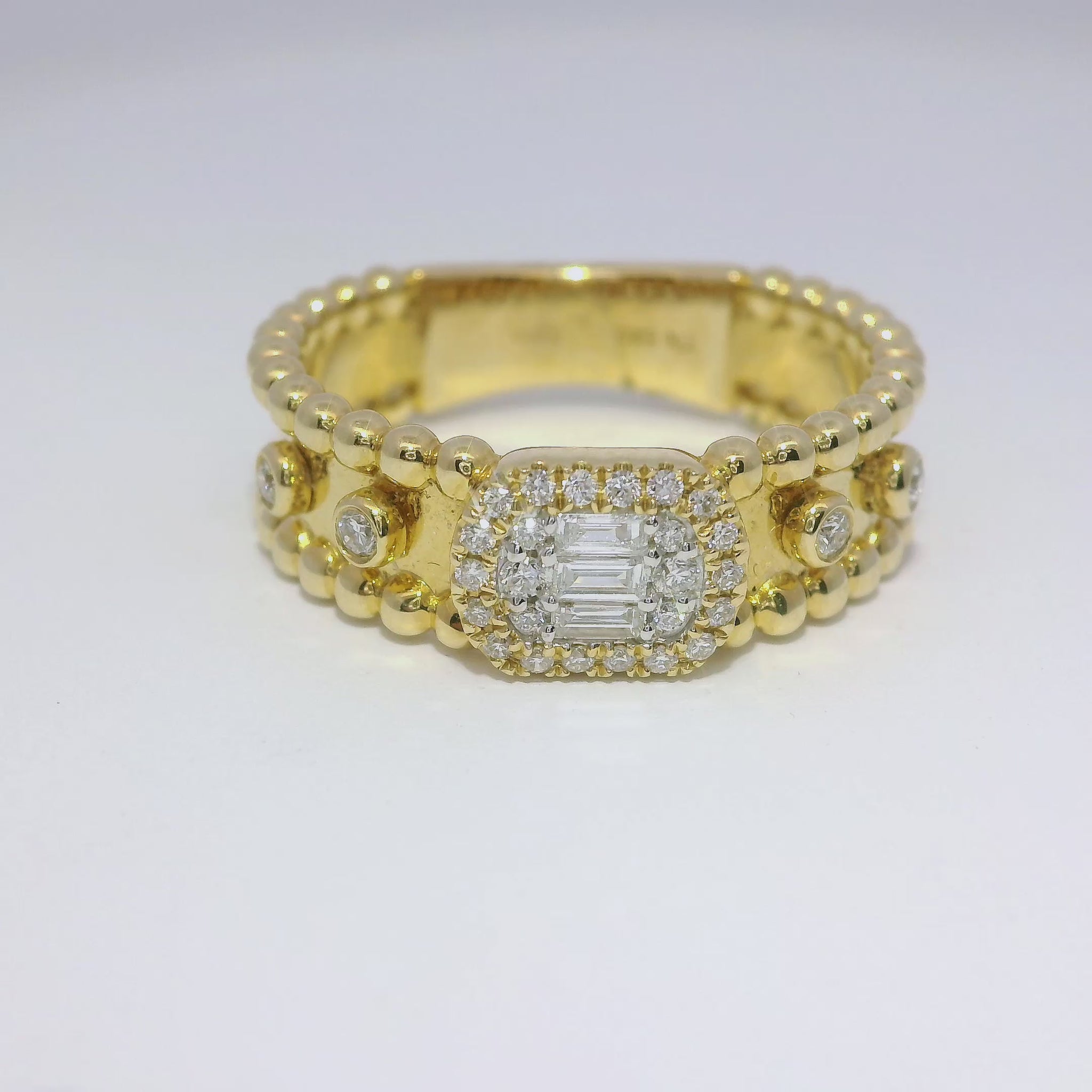 This 14k yellow gold ring features a dazzling 0.26CT diamond, adding a touch of elegance and sophistication to any outfit. Crafted with expert precision, this ring is a timeless piece that will be treasured for years to come. Elevate your style with this stunning diamond ring.