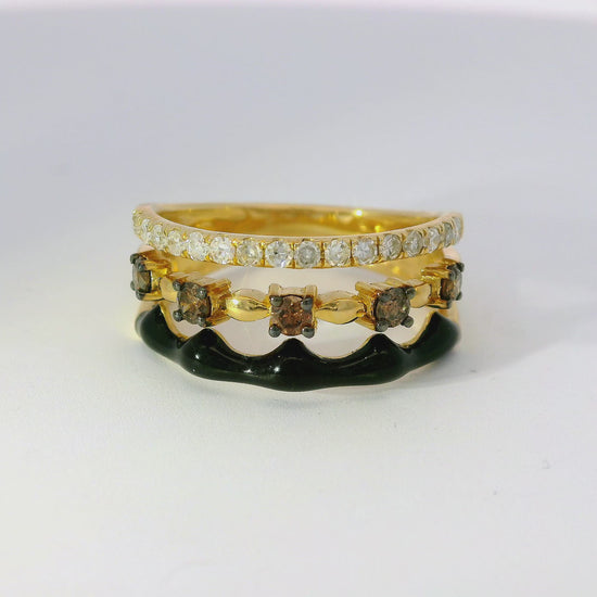 0.29CT White and Brown Diamonds with Black Enamel Ring 14K Yellow Gold
