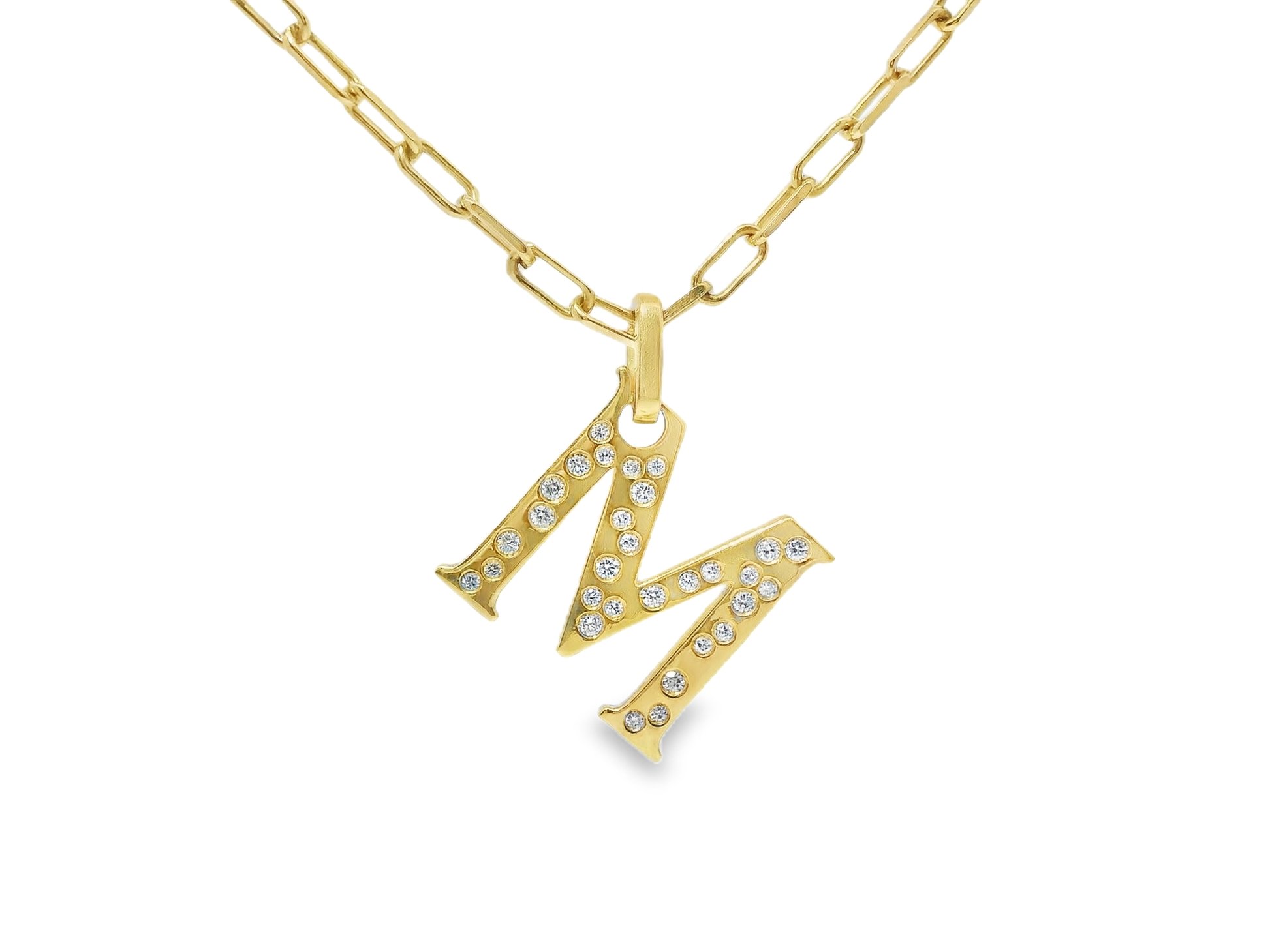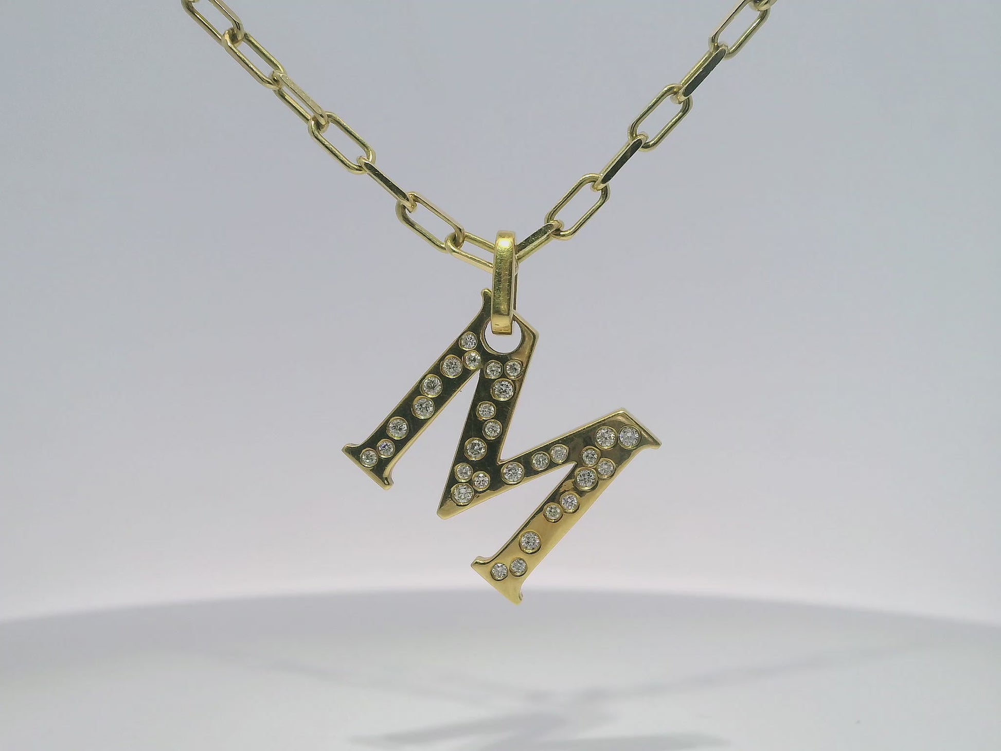 0.32CT Diamond M Letter Pendant 18k Yellow Gold