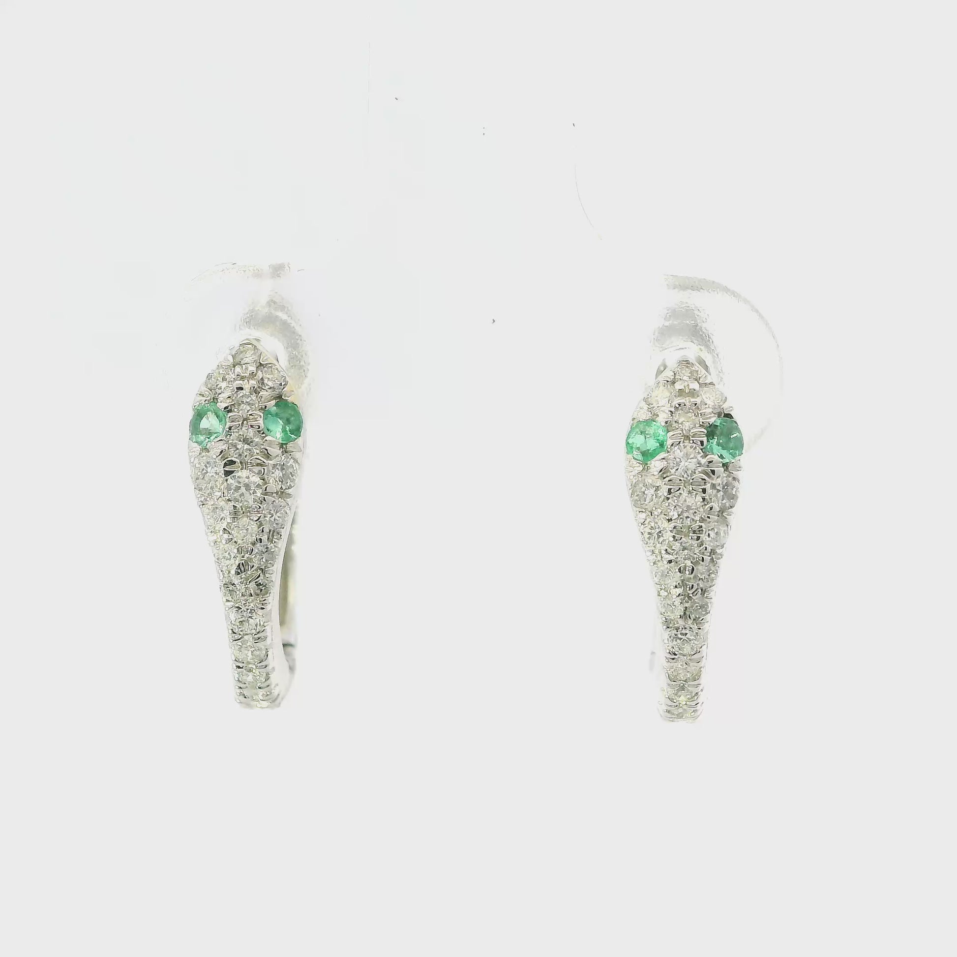 These 18k white gold earrings feature a refined combination of a 0.33-carat diamond and a 0.08-carat emerald, offering a sophisticated balance of brilliance and color. Expertly crafted, they provide enduring elegance suitable for both everyday wear and special occasions. The high-quality materials ensure lasting durability and a timeless aesthetic.