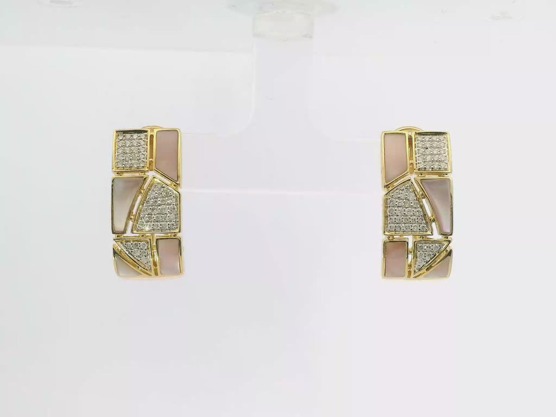 Elevate your elegance with this 0.33CT diamond earring featuring a delicate pink shell accent, set in lustrous 14k yellow gold. The combination of sparkling diamonds and soft pink shell creates a refined, sophisticated look perfect for both everyday wear and special occasions. Crafted with expert precision, this earring offers lasting beauty and subtle luxury.