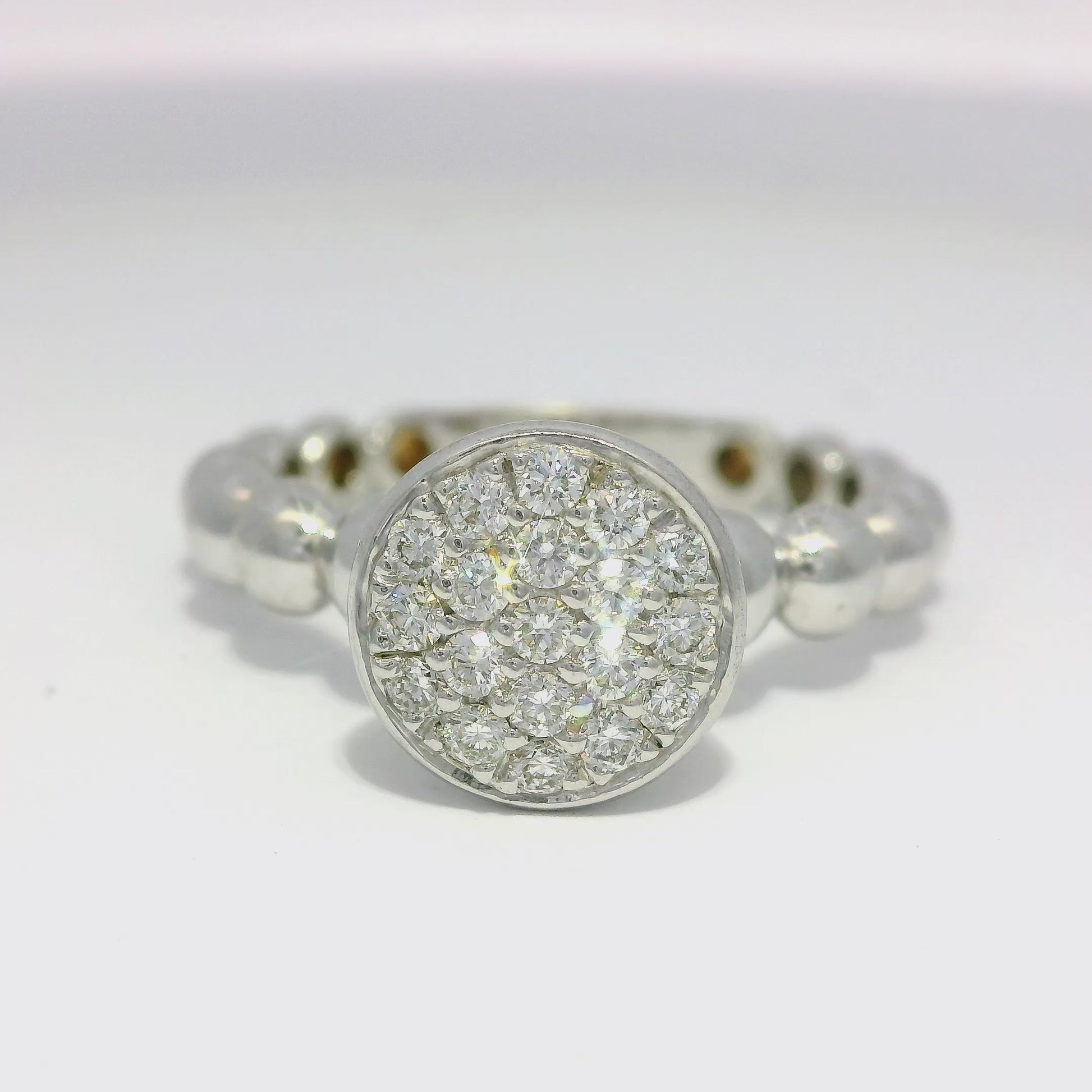 Expertly crafted with 18K white gold, this diamond ring features 0.34 carats of sparkling diamonds. Take your look to the next level with this elegant and timeless piece.