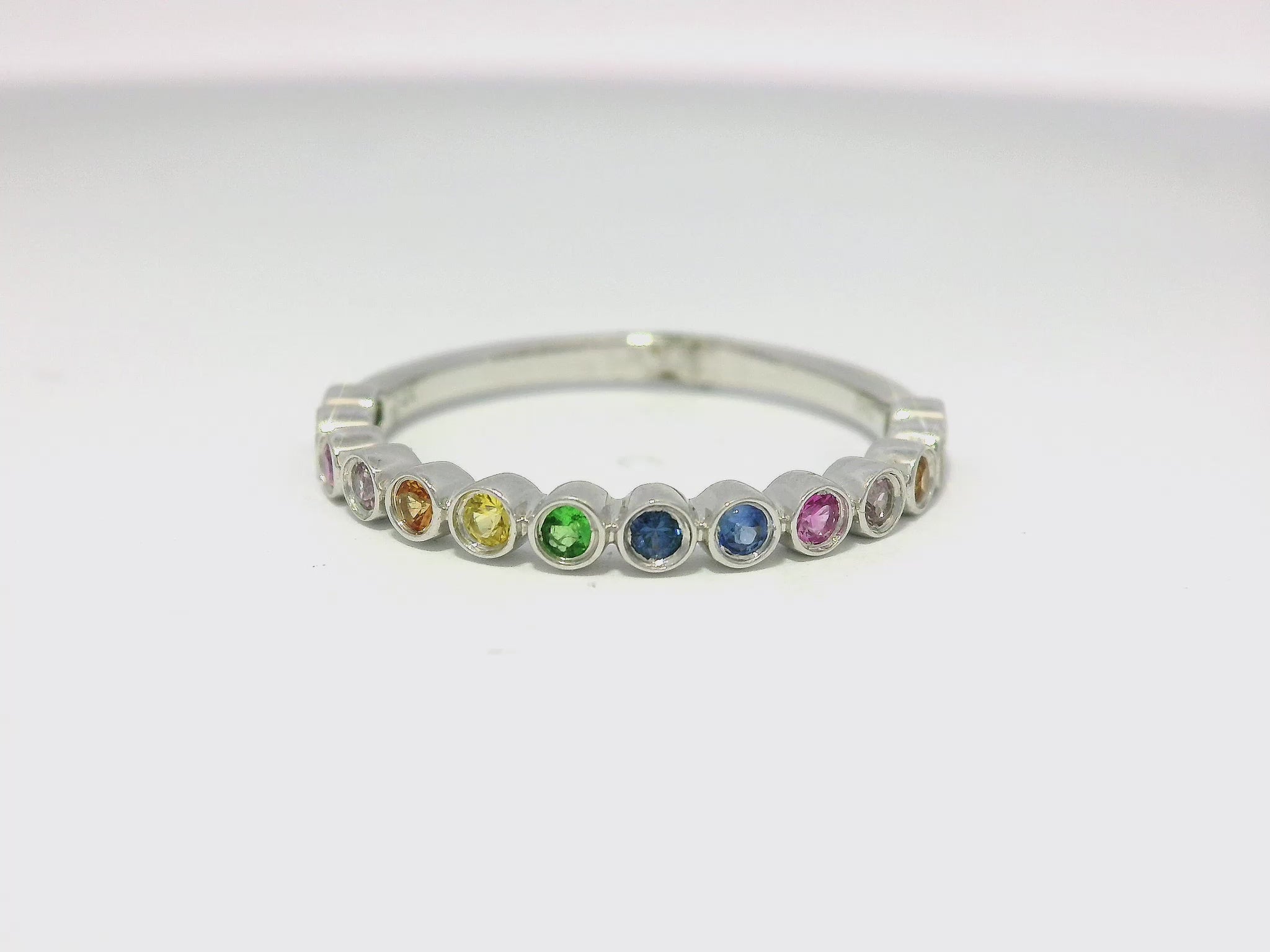 This elegant ring features 0.35 carats of mixed sapphires set in a 14k white gold band. With its stunning design and high-quality materials, this ring is the perfect piece to add to your jewelry collection. The beautiful mix of sapphires makes it a versatile piece that can be worn for any occasion.