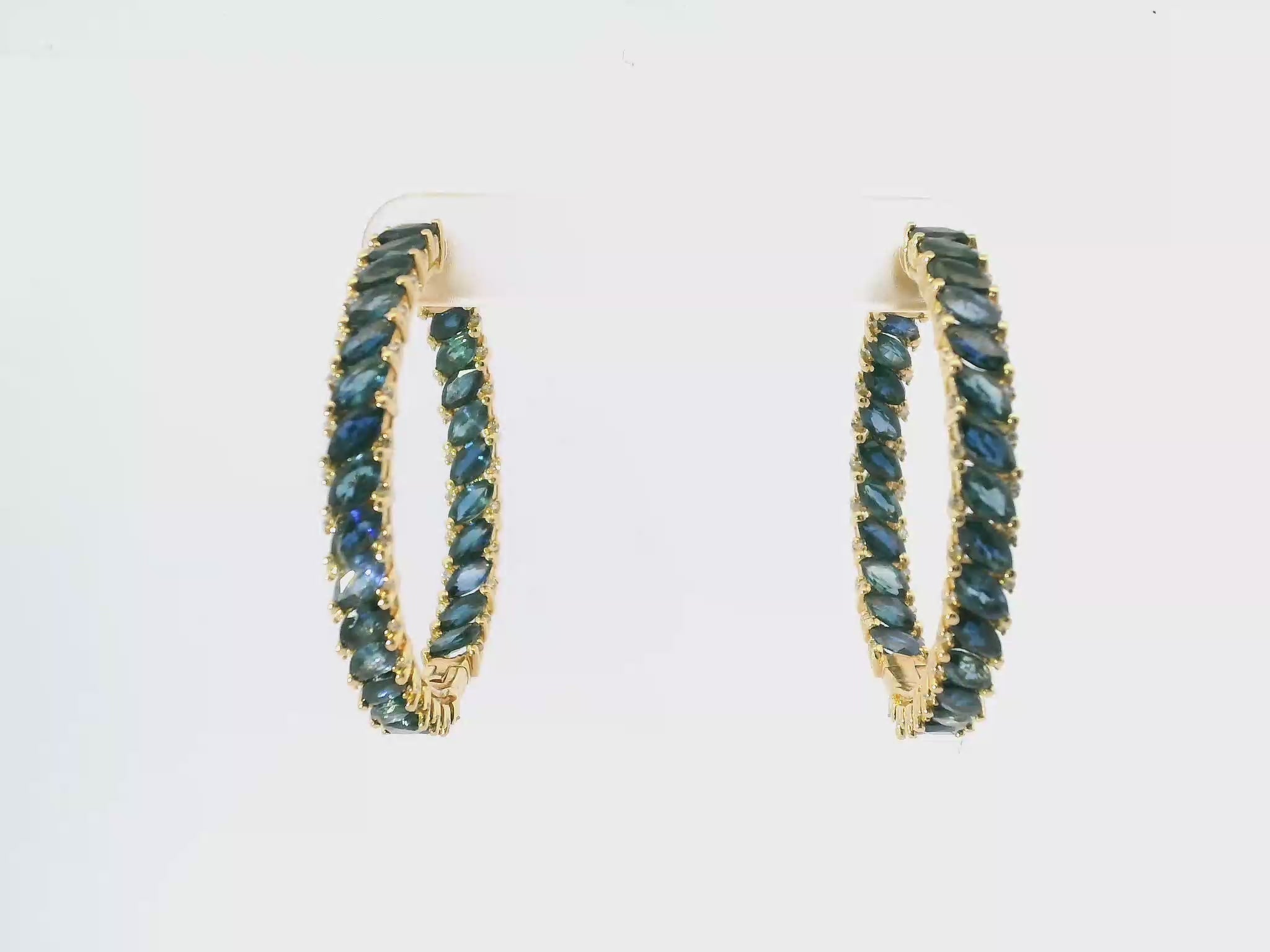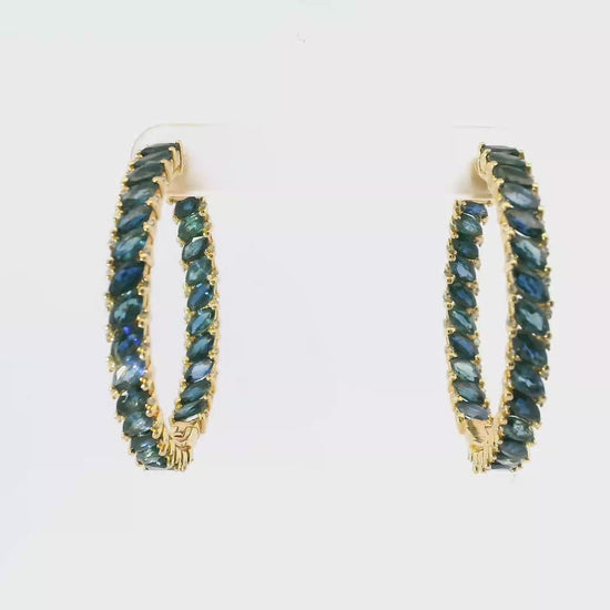 0.36CT Diamond 10.31CT Blue Sapphire HOOP 14k Yellow Gold Earring