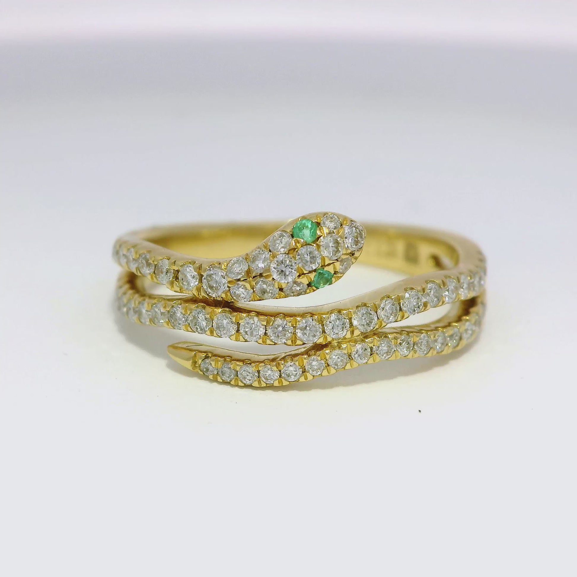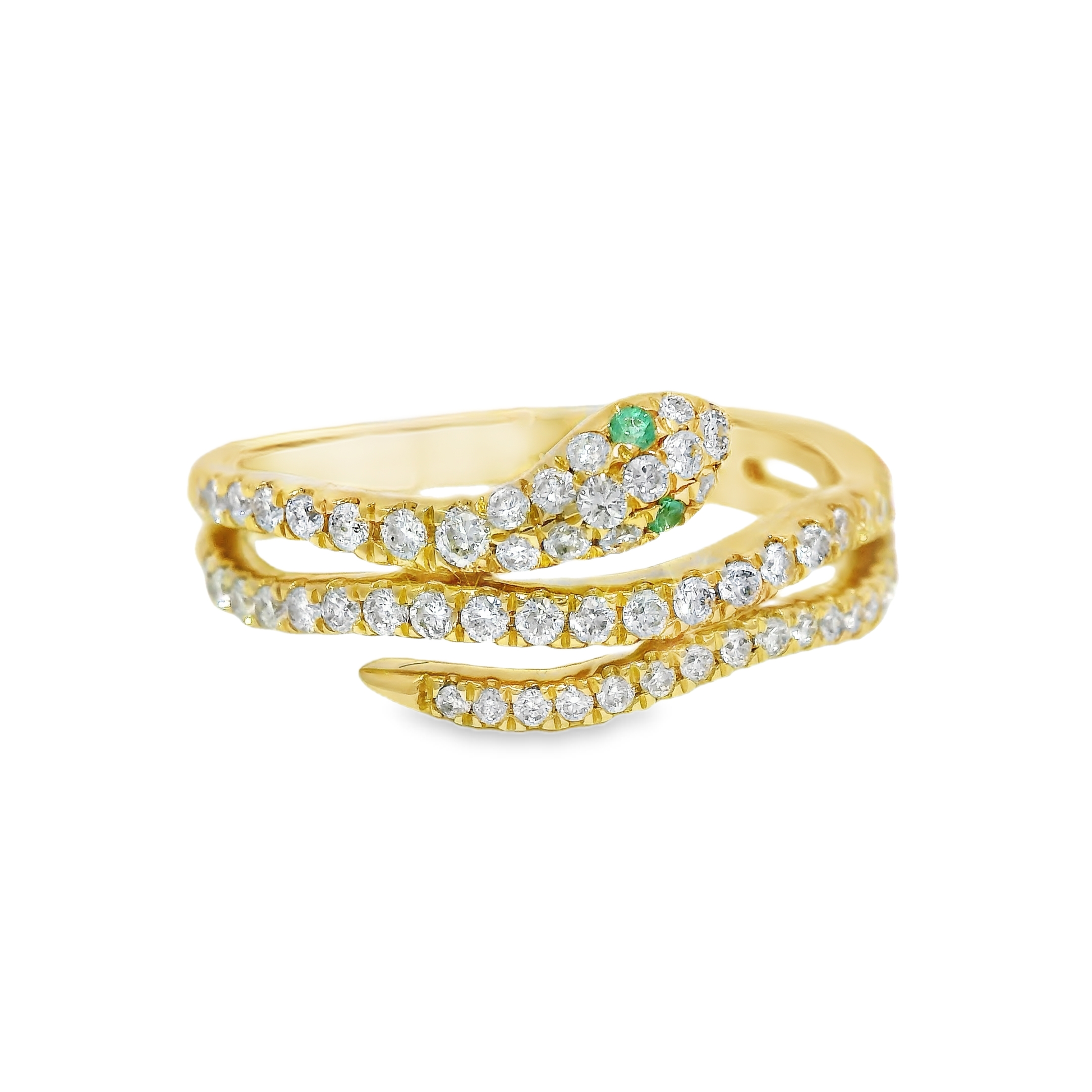0.42CT Diamond and 0.03CT Emerald Serpent Ring 18K Yellow Gold