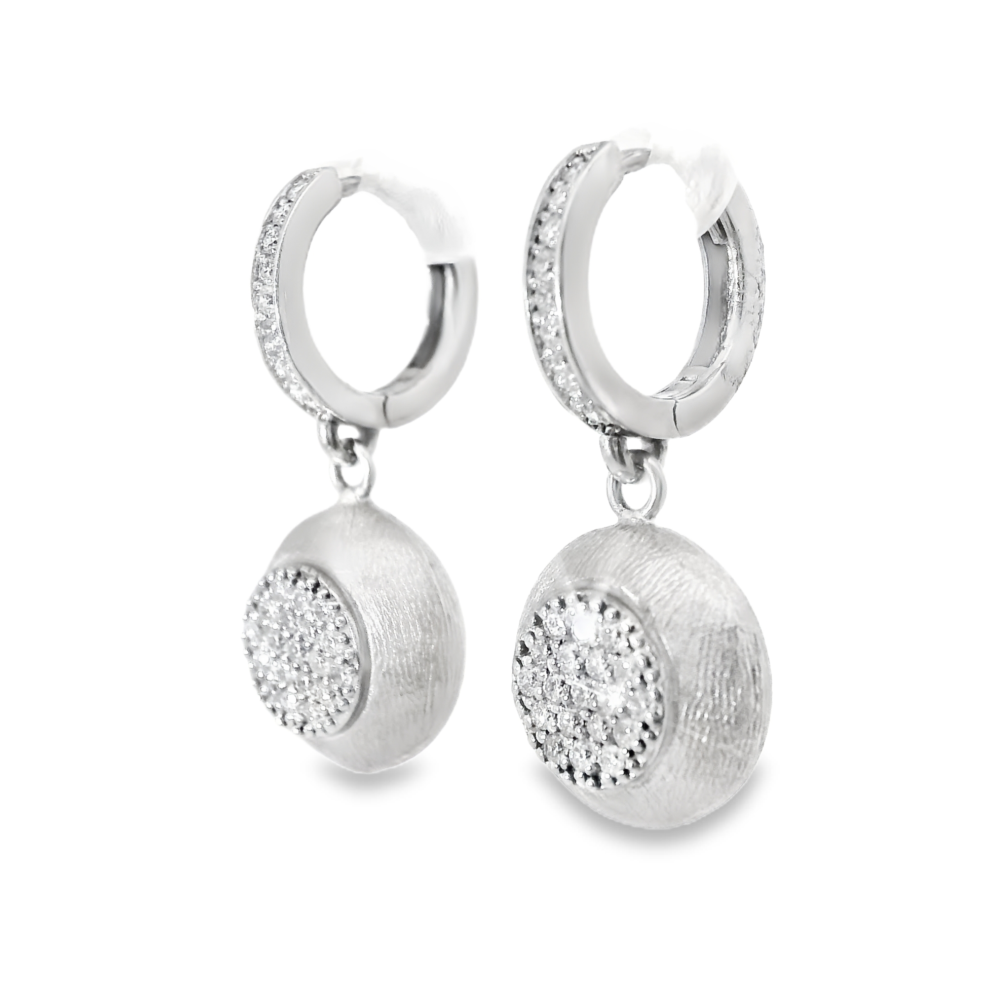 These 0.46-carat diamond earrings are crafted in 14k white gold, offering a refined and timeless elegance. The high-quality diamonds provide brilliant sparkle, while the durable white gold setting ensures lasting wear. Perfect for adding a sophisticated touch to any ensemble, these earrings combine expert craftsmanship with classic design.
