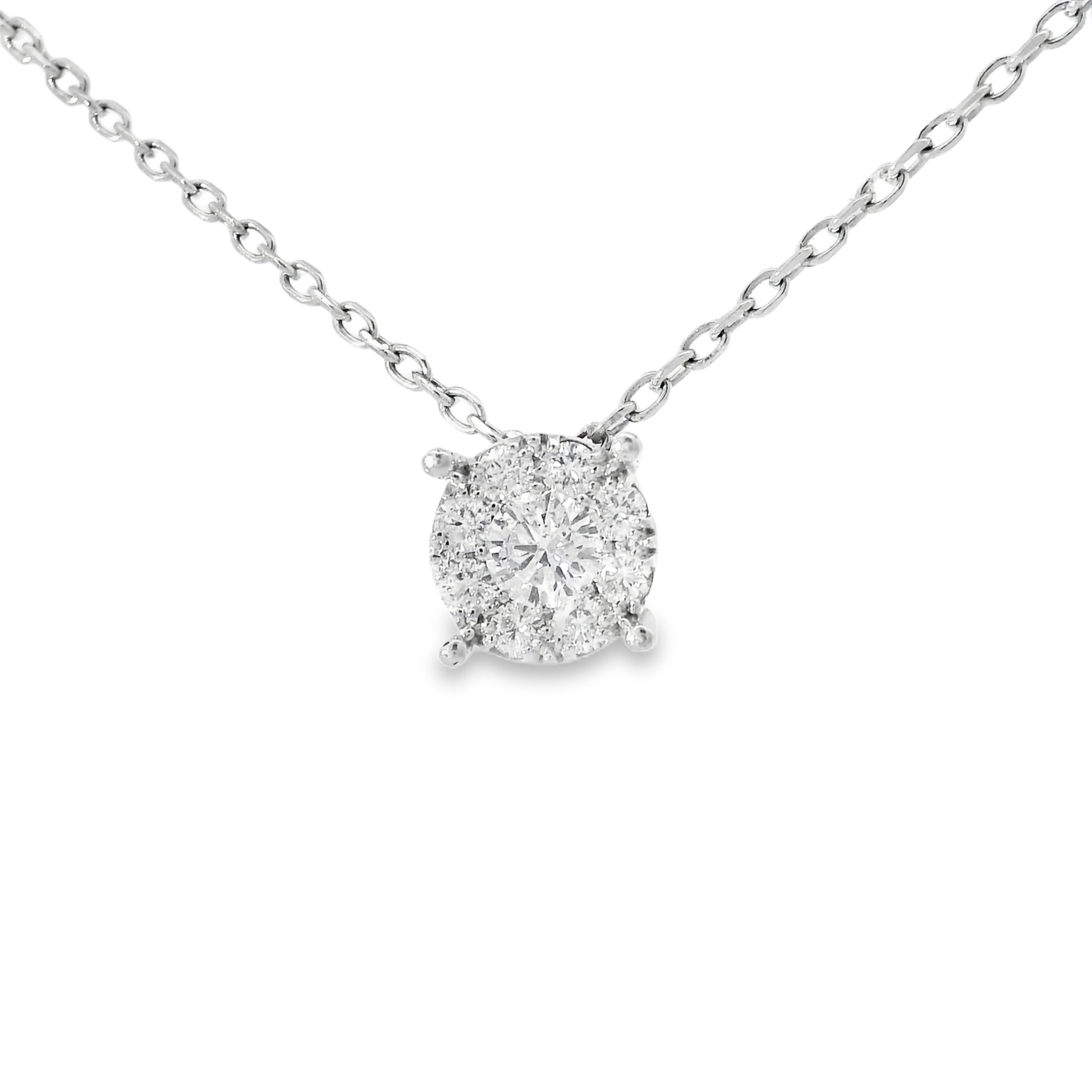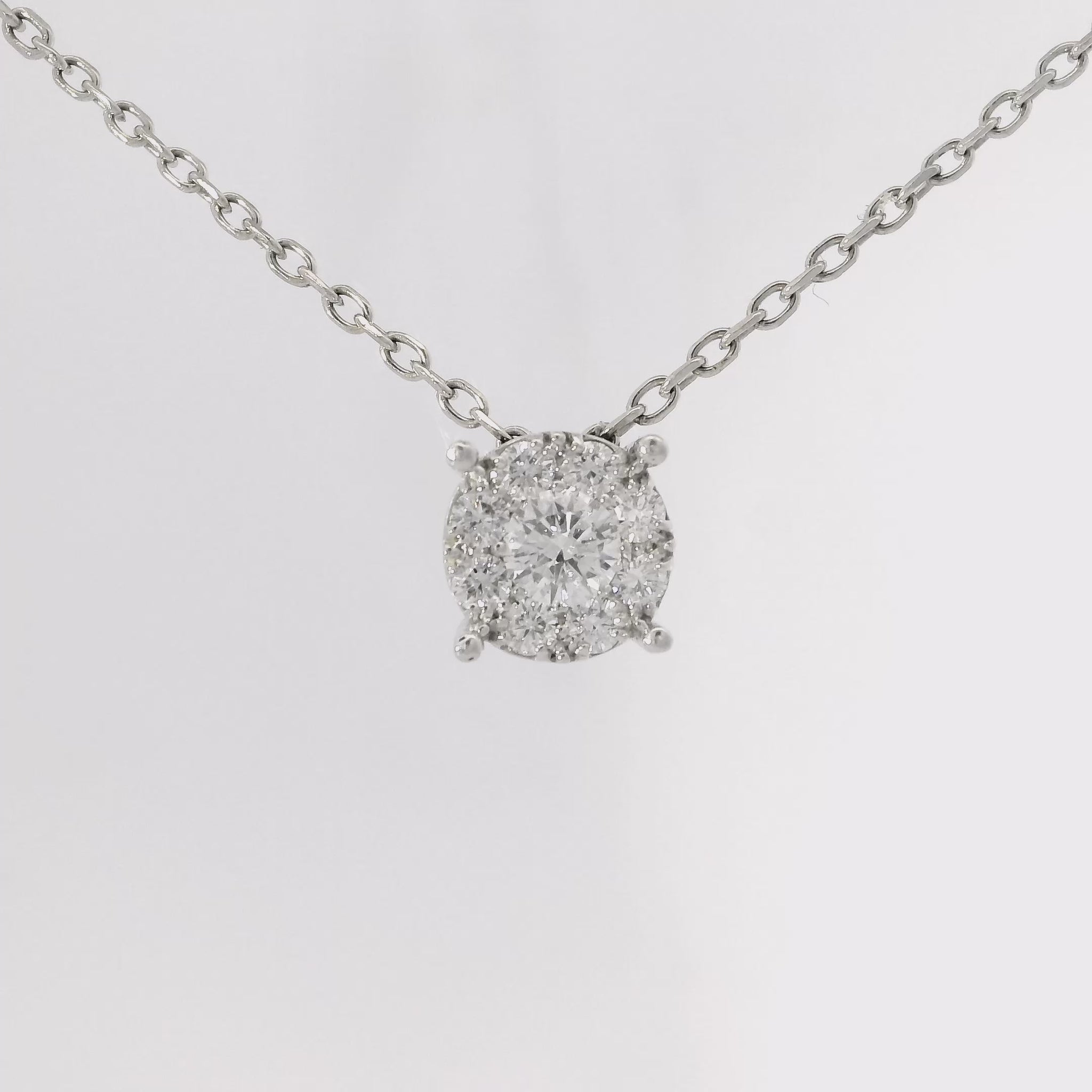 This 0.49CT diamond pendant in 14k white gold is an elegant addition to any jewelry collection. The high quality diamond is meticulously set in a luxurious white gold setting, making it a timeless and sophisticated piece. Perfect for any occasion, this pendant exudes luxury and adds a touch of sparkle to any outfit.