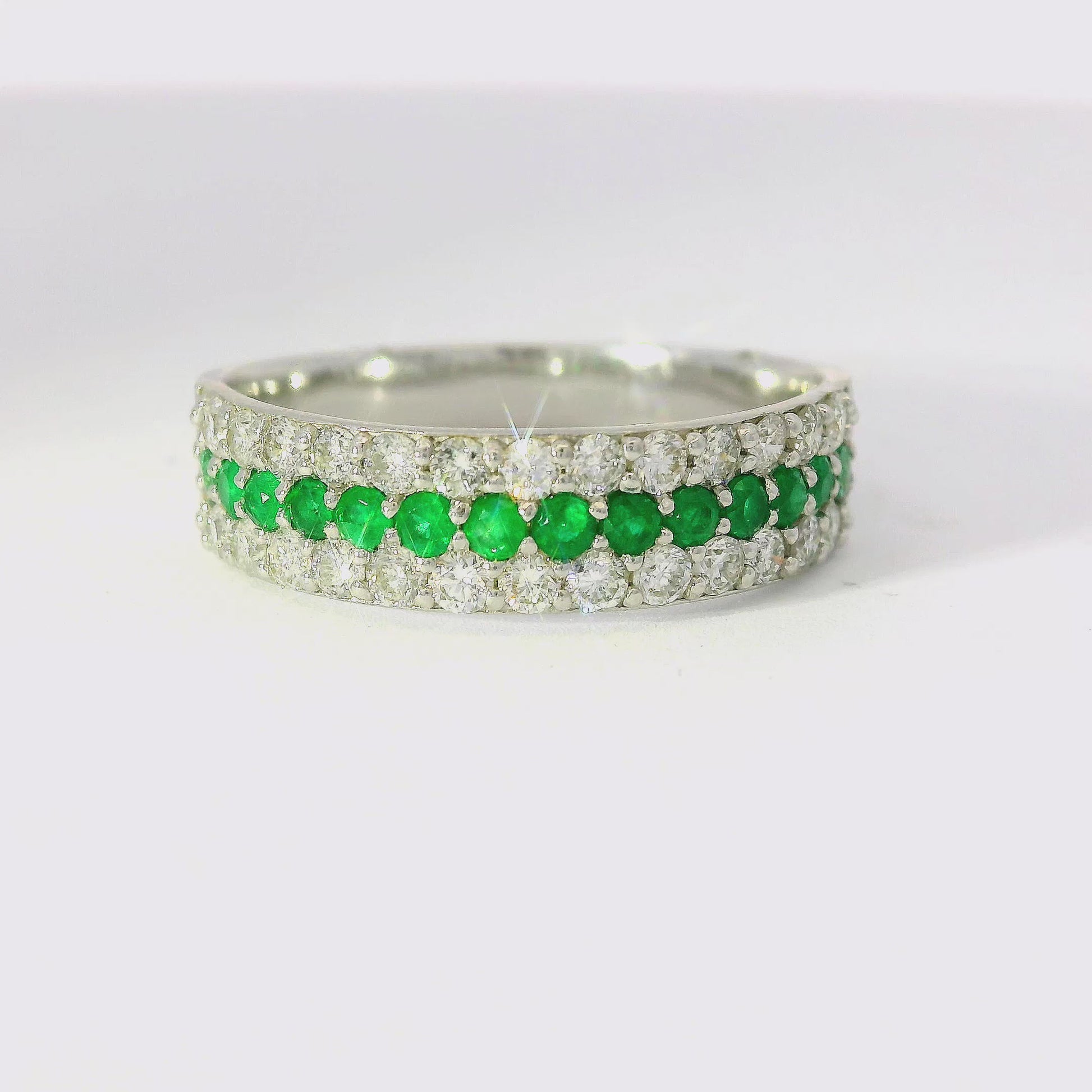 0.50CT Diamond 1.08CT Emerald Ring 18K White Gold