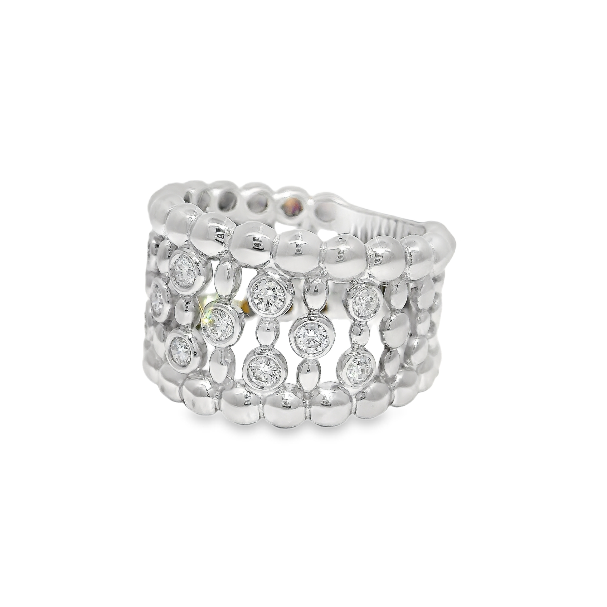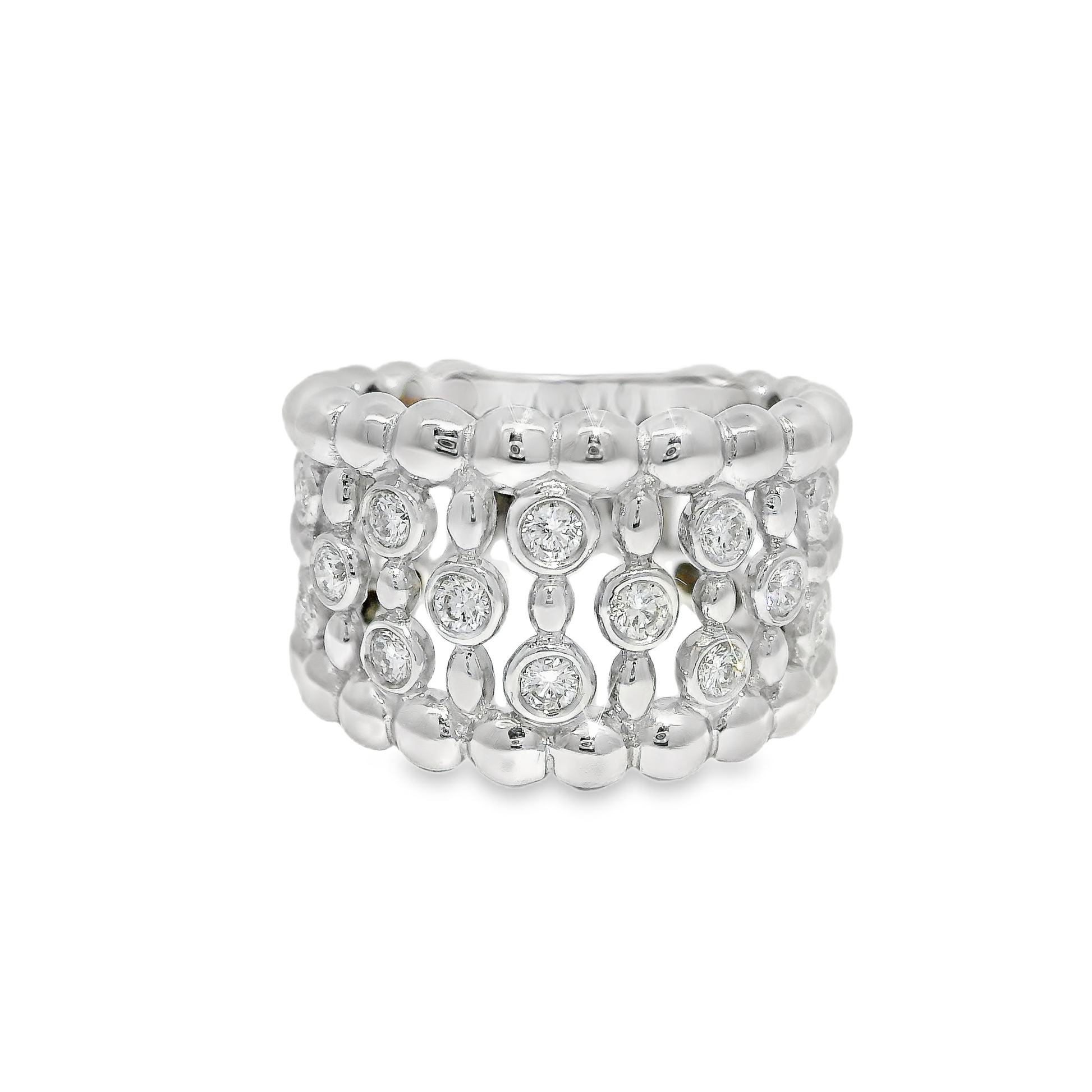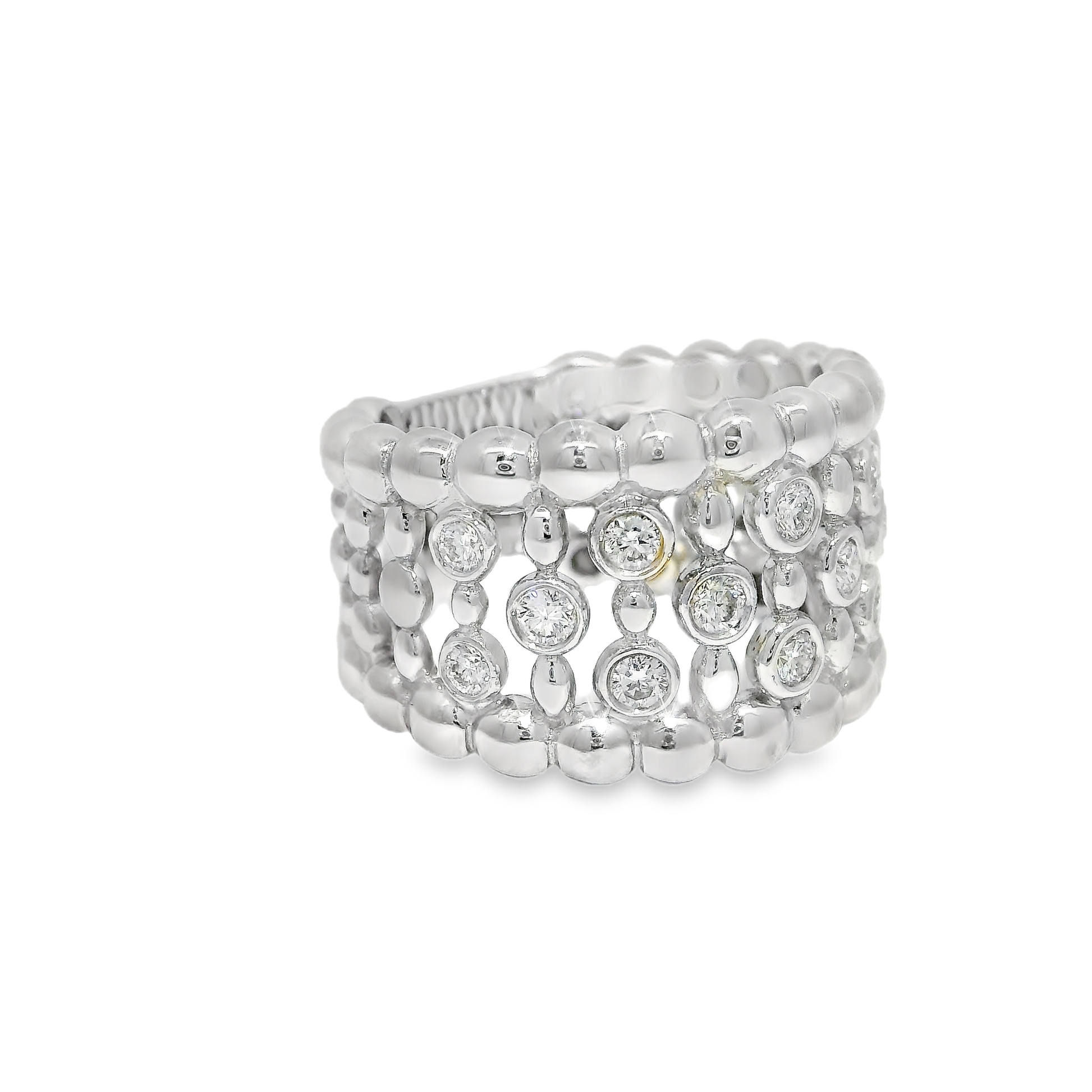 This 0.50CT diamond ring is set in 18K white gold, offering a classic and elegant look. With its high-quality diamonds and durable gold setting, this ring is sure to make a statement. Perfect for any special occasion, this ring is an investment in timeless style.