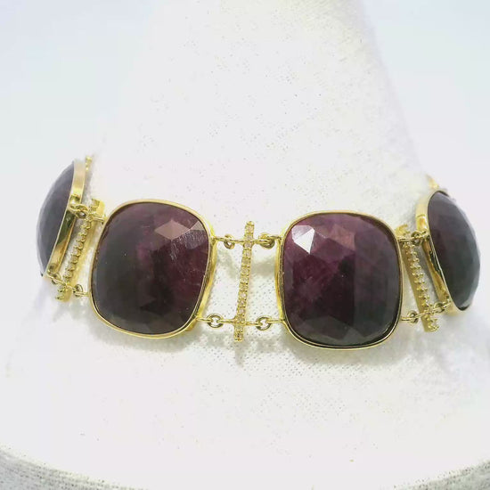 0.50CT Diamond with Ruby 14k Yellow Gold Bracelet