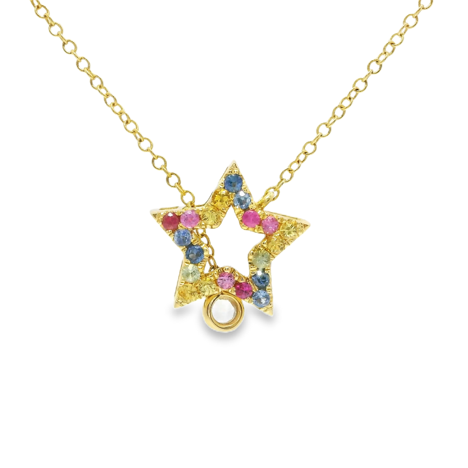 0.55CT Mixed Sapphire Pendant 14k Yellow Gold