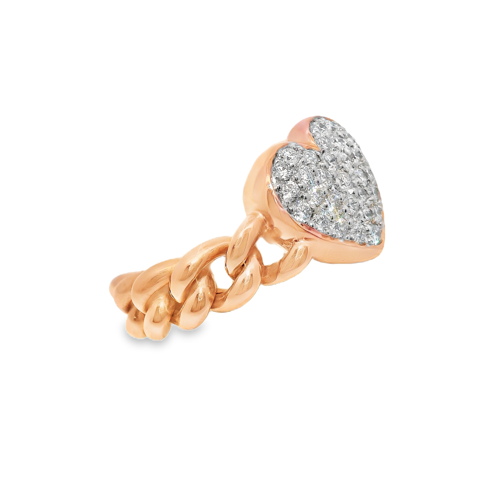0.56CT Diamond Chain Heart Link Ring 18k Rose Gold