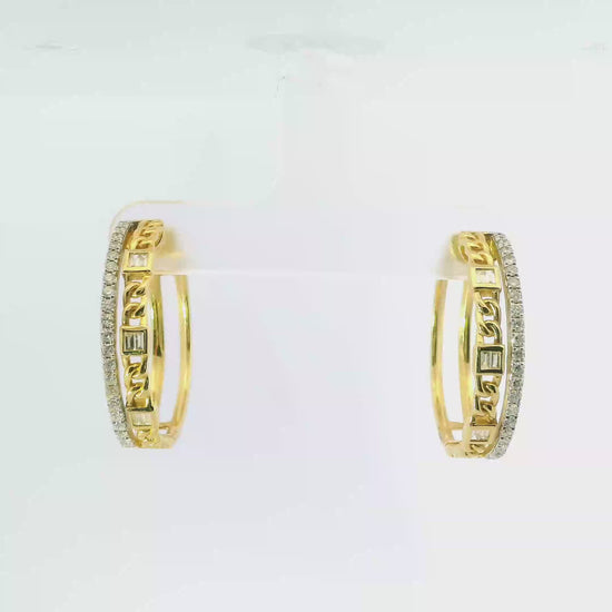 These 0.56-carat diamond hoop earrings are crafted in 14k yellow gold, combining timeless elegance with expert craftsmanship. The sparkling diamonds add refined brilliance, while the classic hoop design ensures versatile wear for both everyday and special occasions. Durable and luxurious, these earrings offer a sophisticated accent to any jewelry collection.