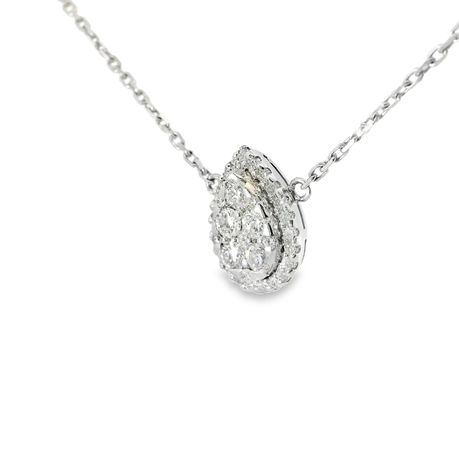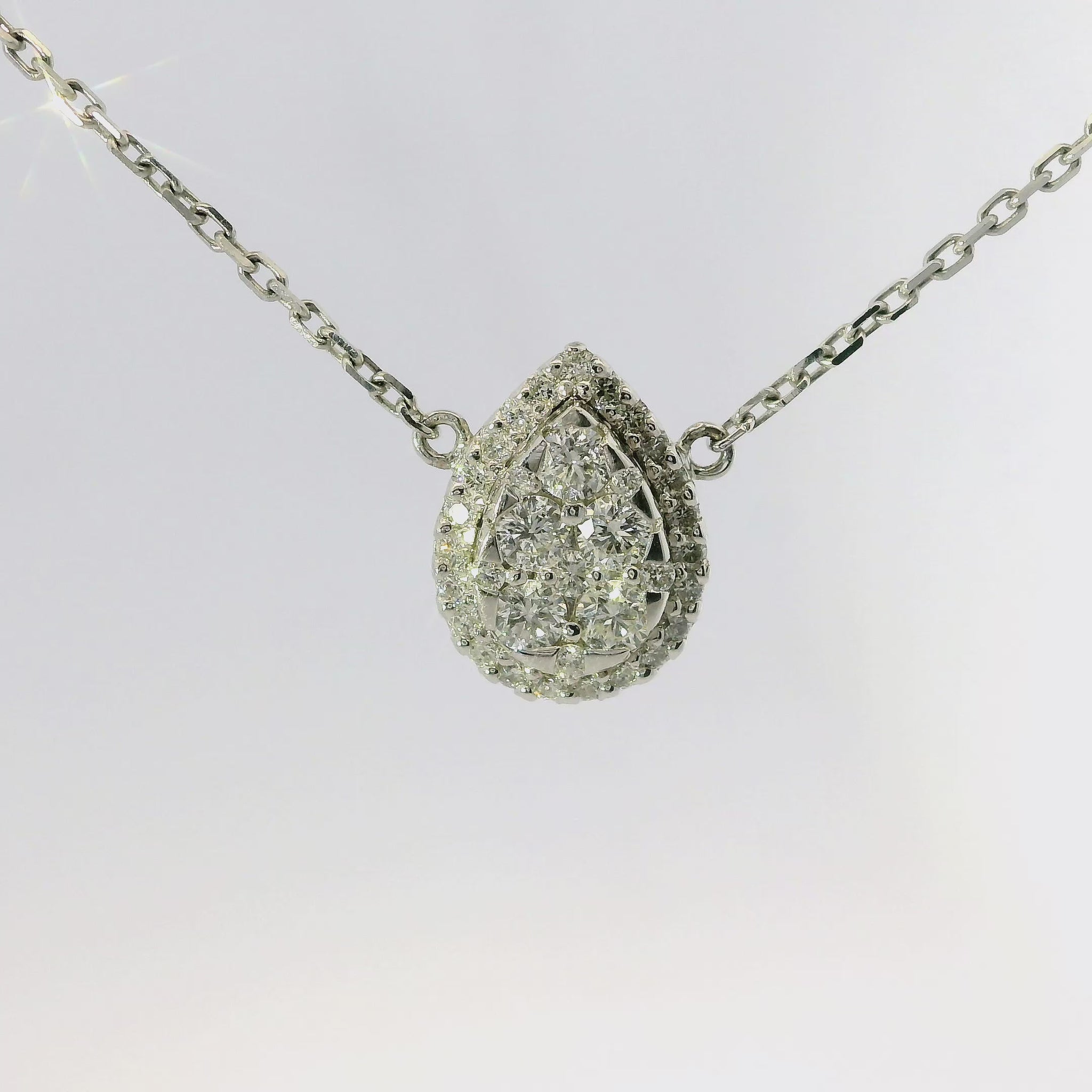 This elegant 0.58CT diamond pendant is expertly crafted in 14k white gold. The high-quality diamonds sparkle and shine, making it the perfect accessory for any occasion. The timeless design and superior materials make this pendant a timeless and dazzling addition to any jewelry collection.