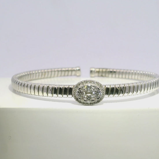 Enhance your style with this elegant 0.64CT diamond bangle crafted in 14k white gold. The brilliant diamonds reflect light from all angles, adding a touch of glamour to any outfit. A timeless piece that will elevate your look.