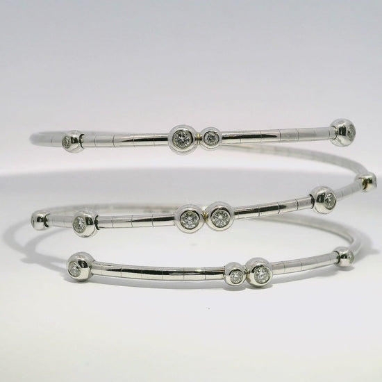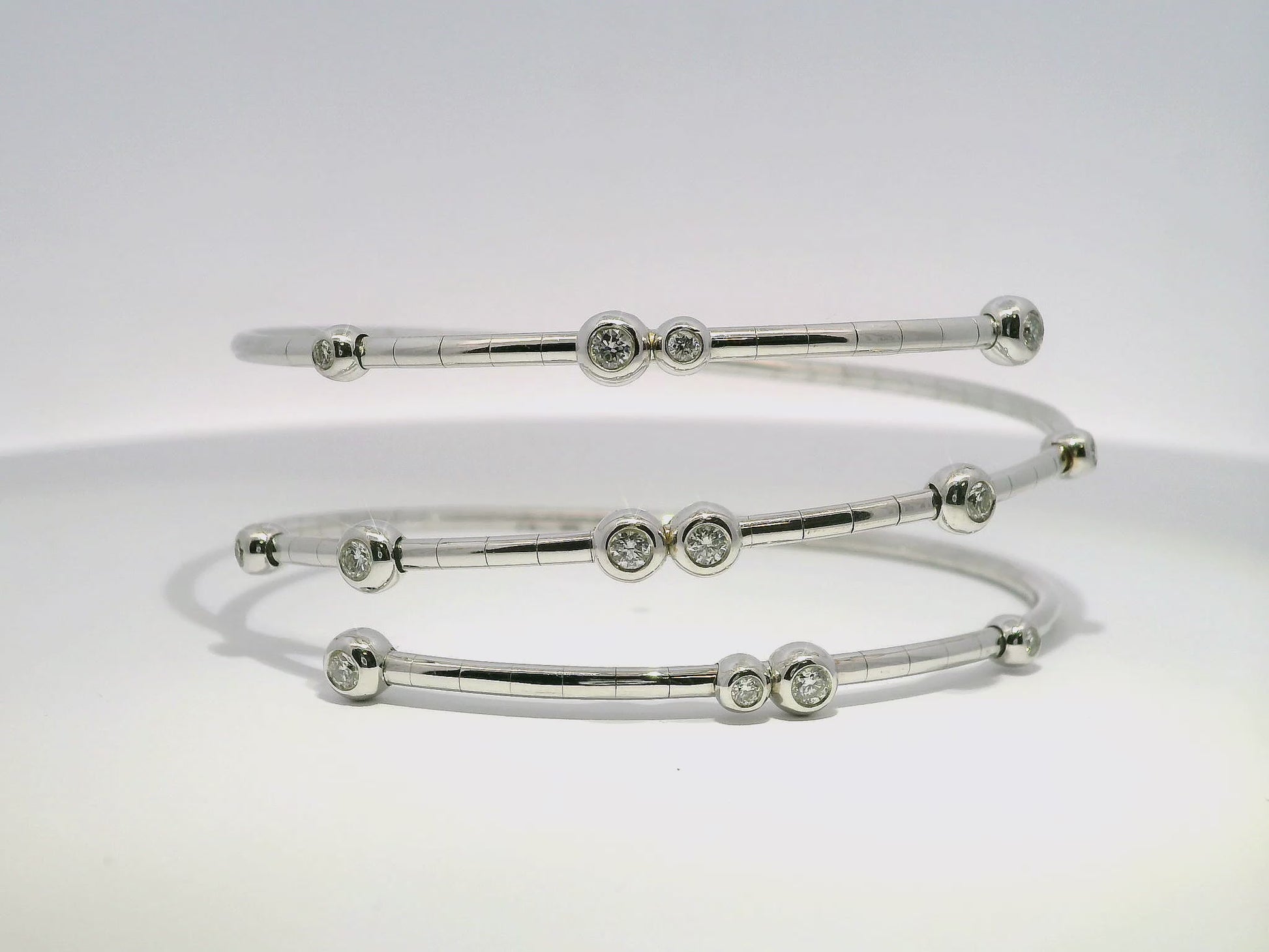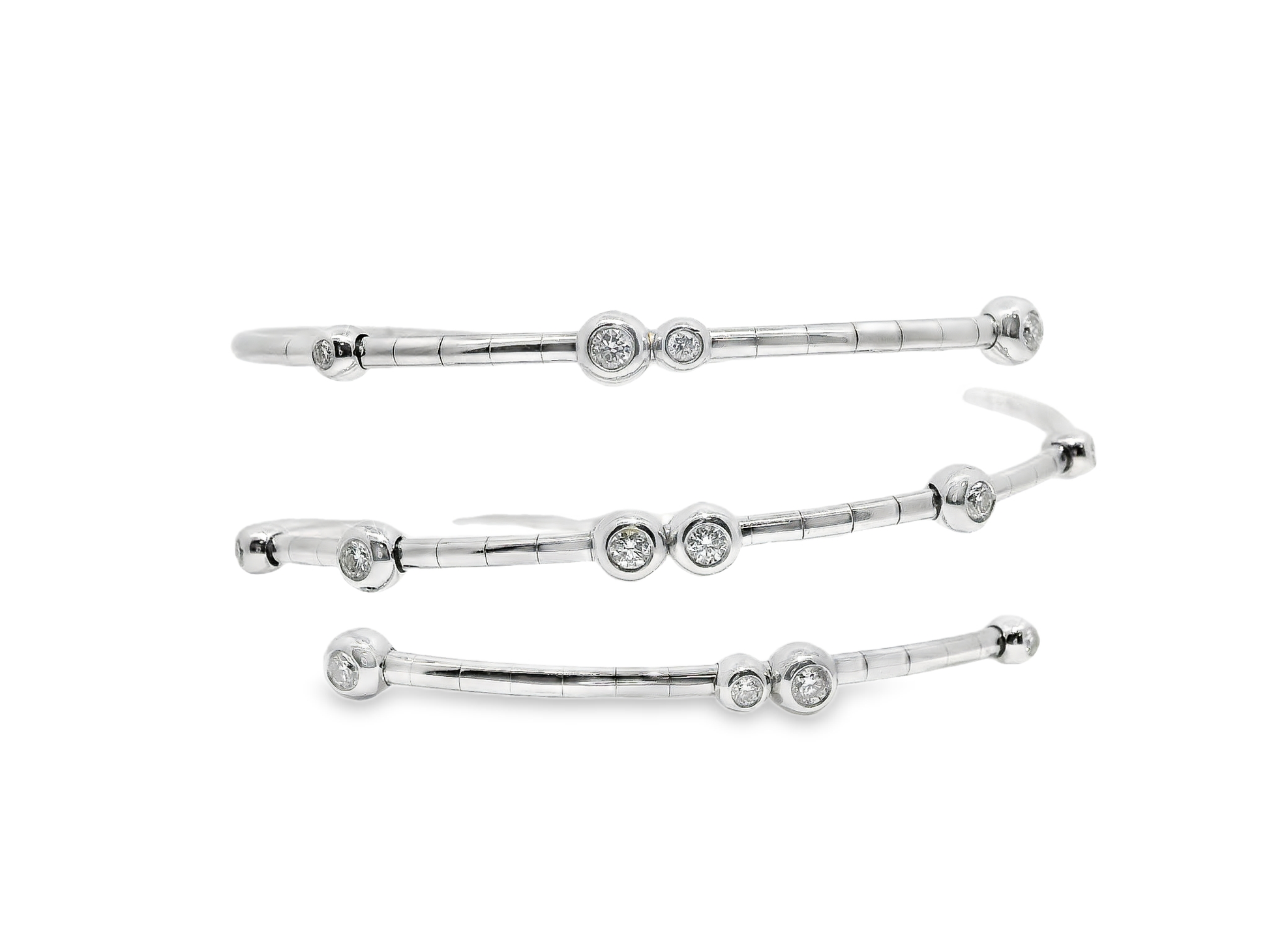 This 0.64CT Diamond Bangle is crafted in luxurious 18k white gold and showcases a stunning array of sparkling diamonds. Its elegant design is perfect for adding a touch of sophistication to any outfit. Expertly crafted and timeless, this bangle is sure to make a statement.