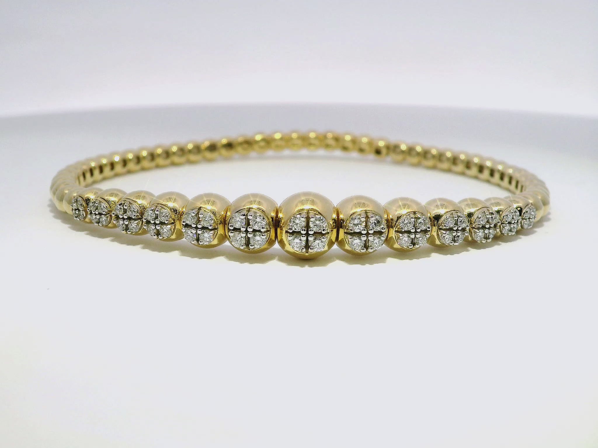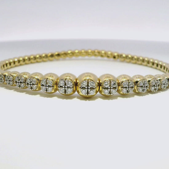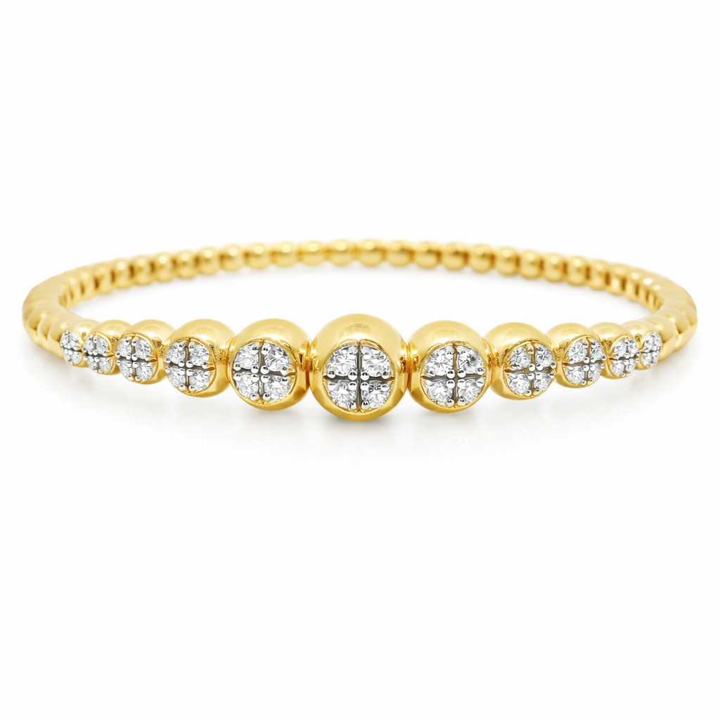 0.69CT Diamond 4 Stone Cluster ID Plain Beads Stretch Bangle 14k Yellow Gold
