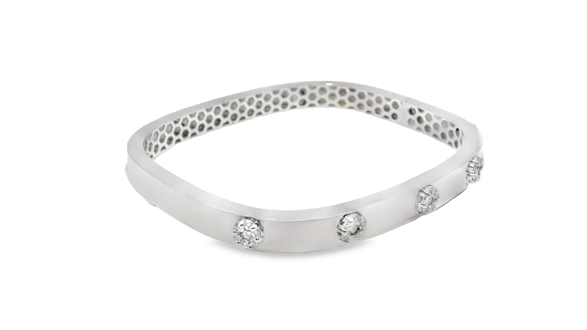 Indulge in luxury with our exquisite 0.70CT Diamond Bangle. Handcrafted in 18k white gold, this stunning piece features 0.70 carats of sparkling diamonds. With timeless elegance and superior craftsmanship, this bangle is the perfect addition to any jewelry collection. Elevate your style and shine bright with this breathtaking diamond bangle.