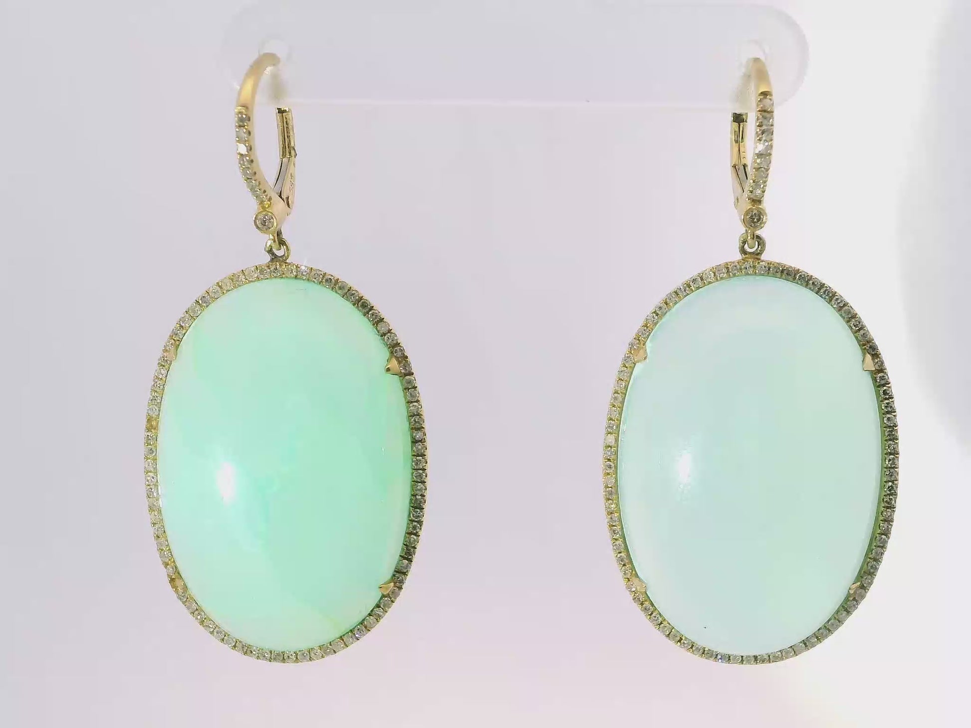 Elevate your elegance with these 14k yellow gold earrings featuring a stunning 0.70 carat diamond paired with serene aqua chalcedony stones. Expertly crafted, this combination offers a refined balance of brilliance and subtle color, perfect for adding a sophisticated touch to any ensemble.