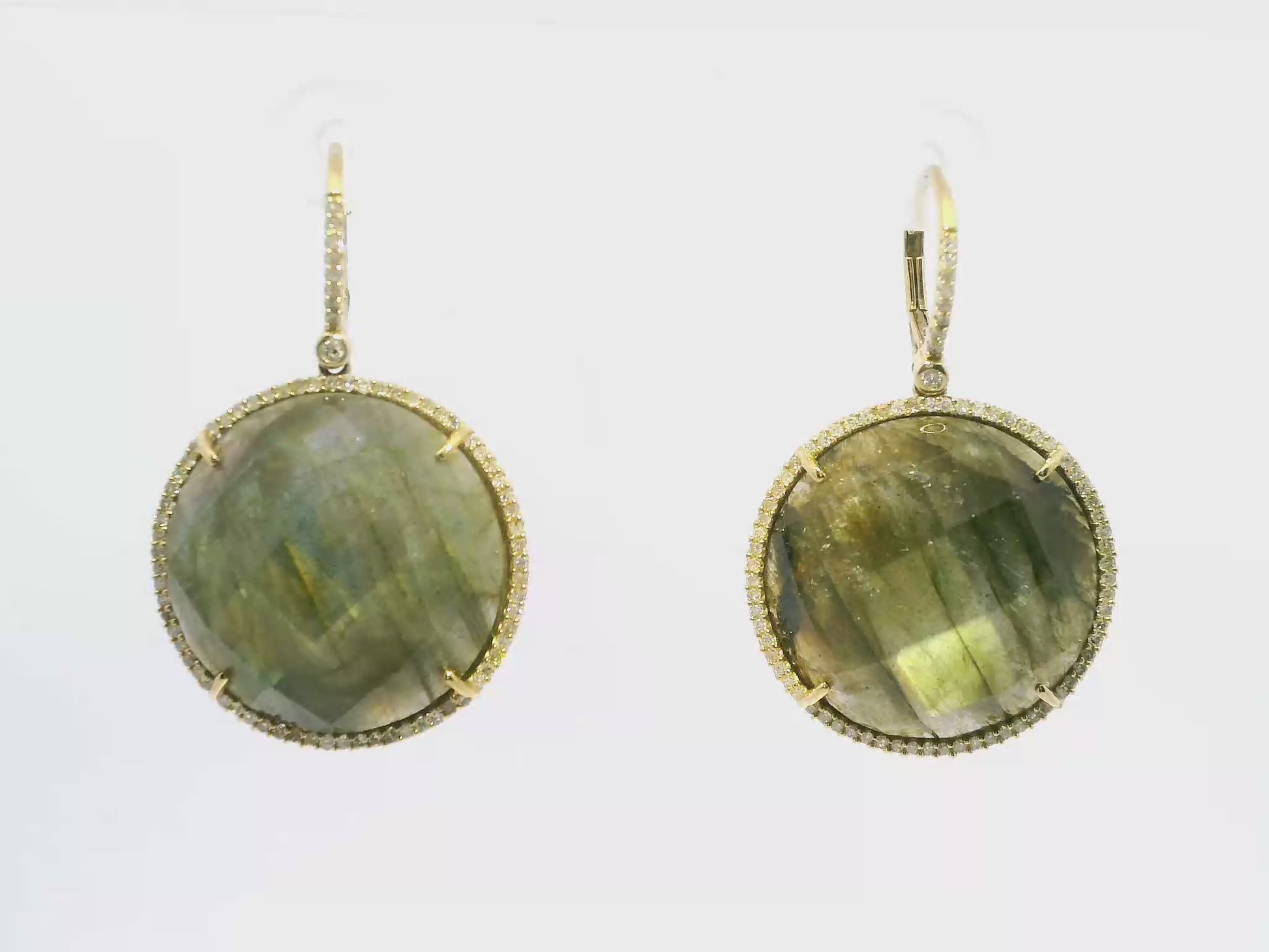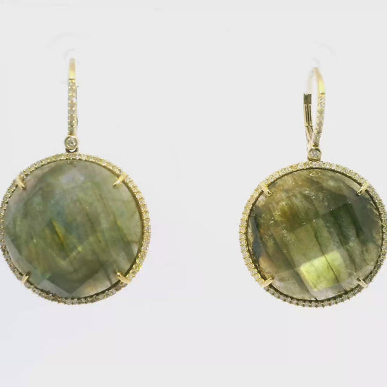 Elevate your elegance with these 14k yellow gold earrings featuring a captivating 0.70-carat diamond paired with luminous labradorite. Expertly crafted, they combine the diamond’s brilliance with the stone’s unique iridescence, offering a refined accessory that enhances both formal and everyday looks with subtle sophistication.