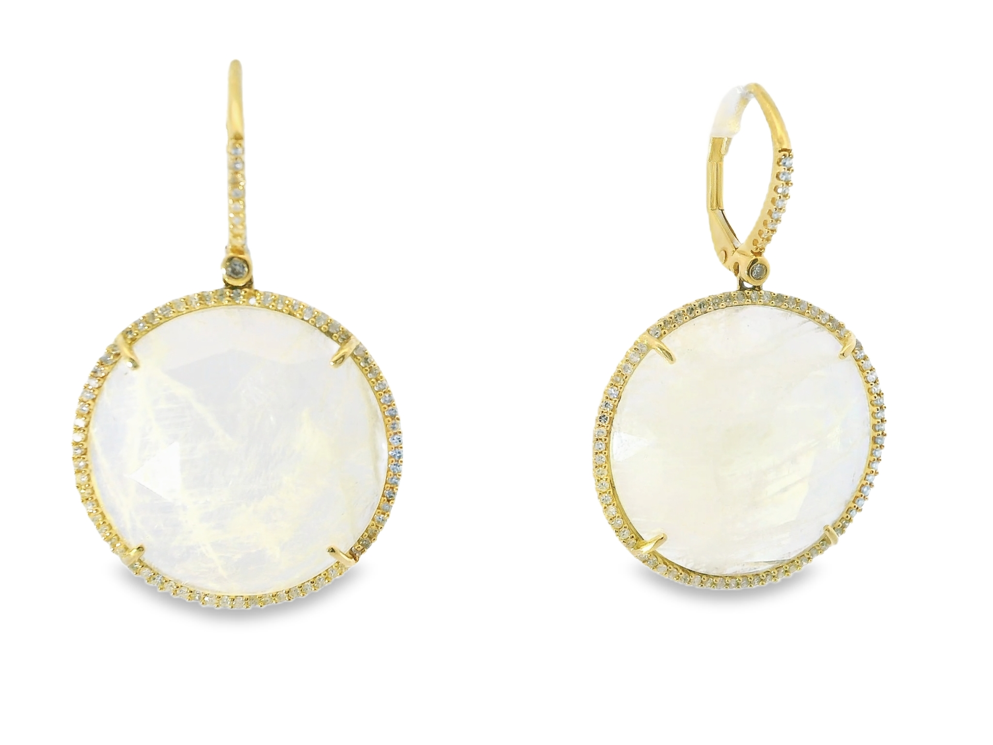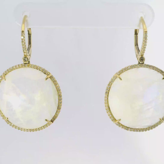 0.70CT Diamond with Moon Stone 14k Yellow Gold Earring
