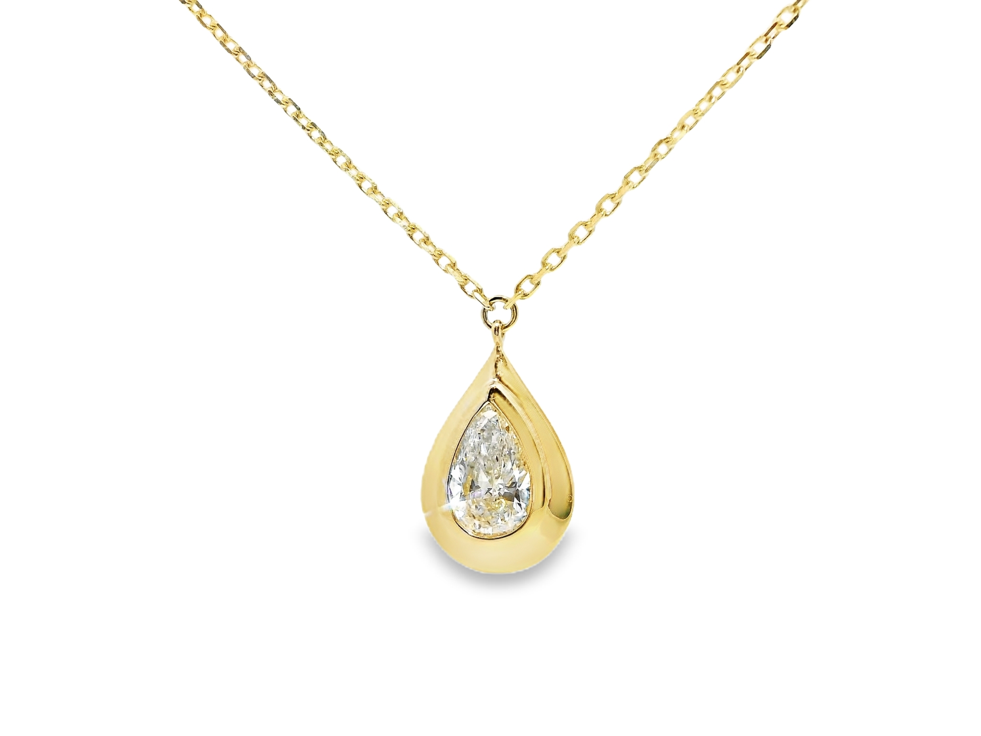 This 0.70CT lab diamond pendant is expertly crafted in 14k yellow gold. With a stunning shine and unique design, this pendant makes the perfect accessory for any outfit. Elevate your style with this elegant and sustainable lab-created diamond pendant.