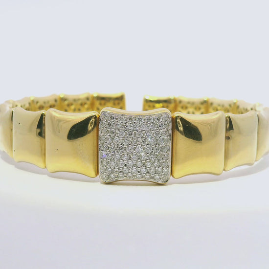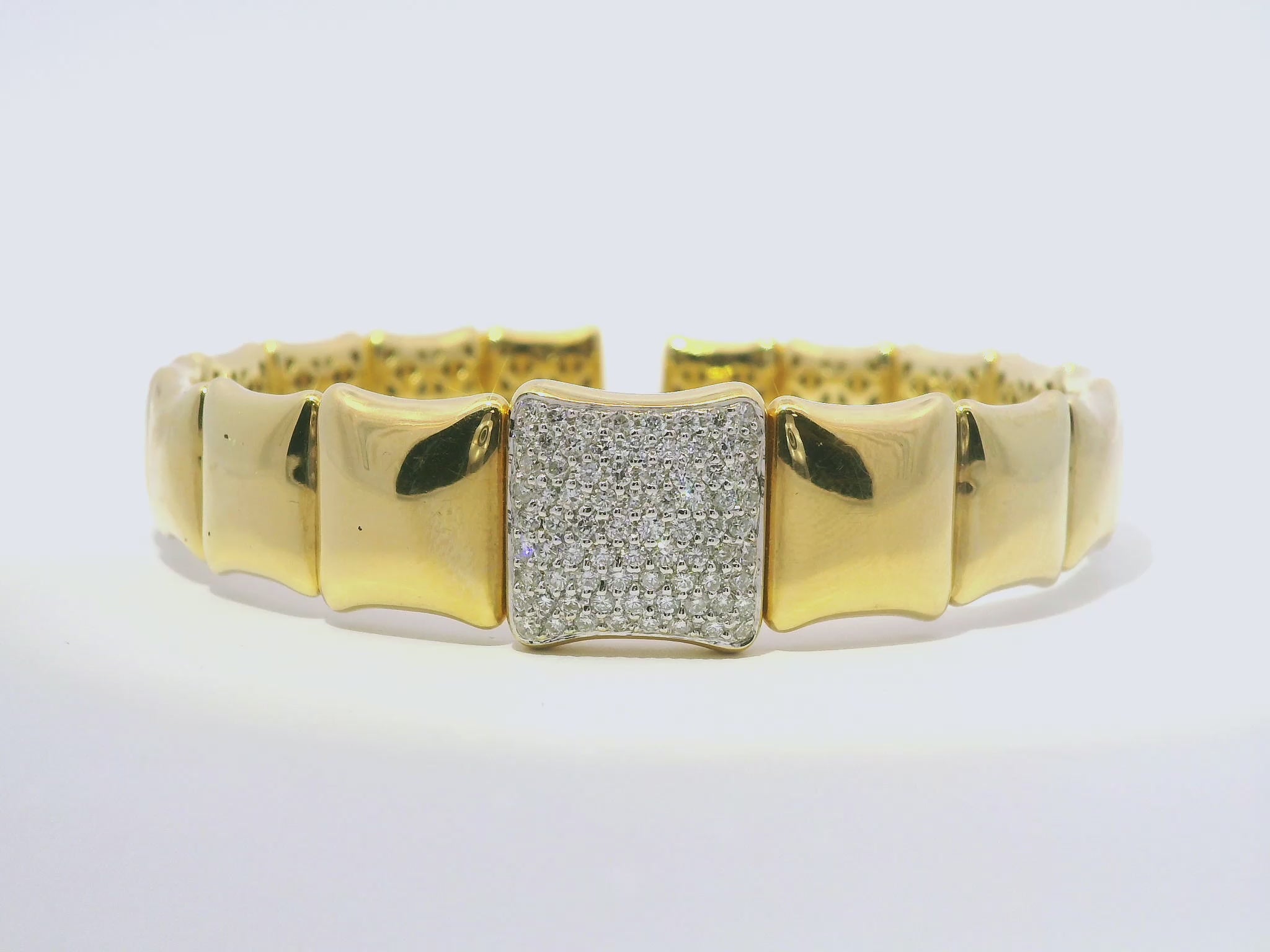 This 18k yellow gold bangle shines with 0.71CT of diamonds. Elevate any outfit with this elegant and timeless accessory. With its high-quality materials and expert craftsmanship, this diamond bangle is a must-have for any jewelry lover. Add a touch of sophistication and luxury to your collection.