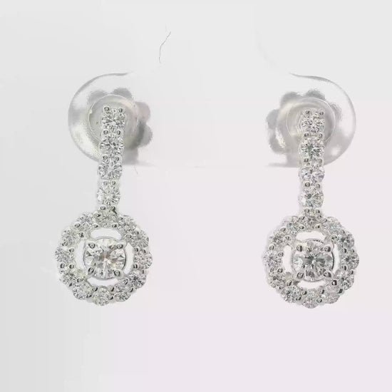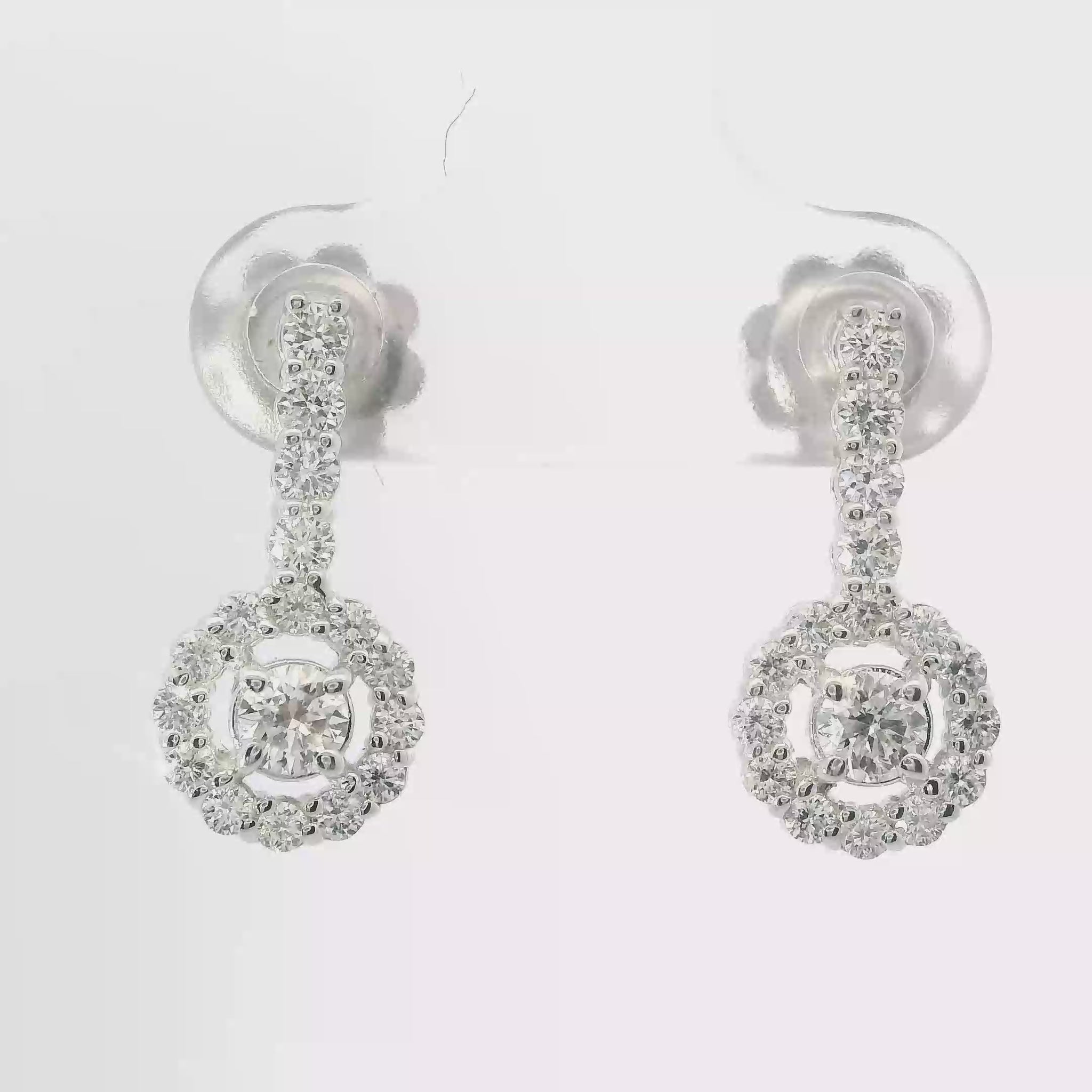 These 0.79-carat diamond earrings are expertly crafted in 18k white gold, offering a refined balance of brilliance and elegance. The high-quality diamonds provide exceptional sparkle, while the durable white gold setting ensures lasting wear. Perfect for adding a sophisticated touch to any ensemble, these earrings combine timeless design with expert craftsmanship.