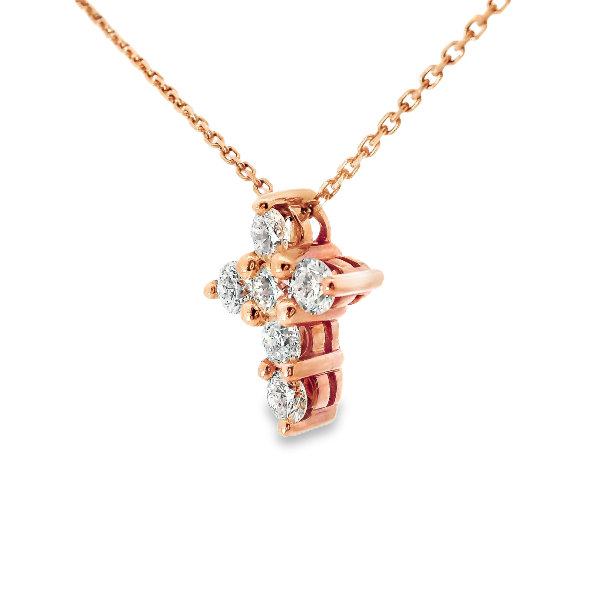 0.80CT Diamond Cross Pendant 14k Rose Gold
