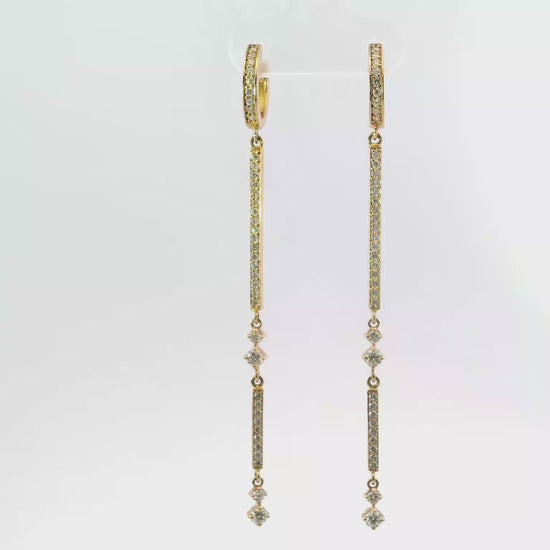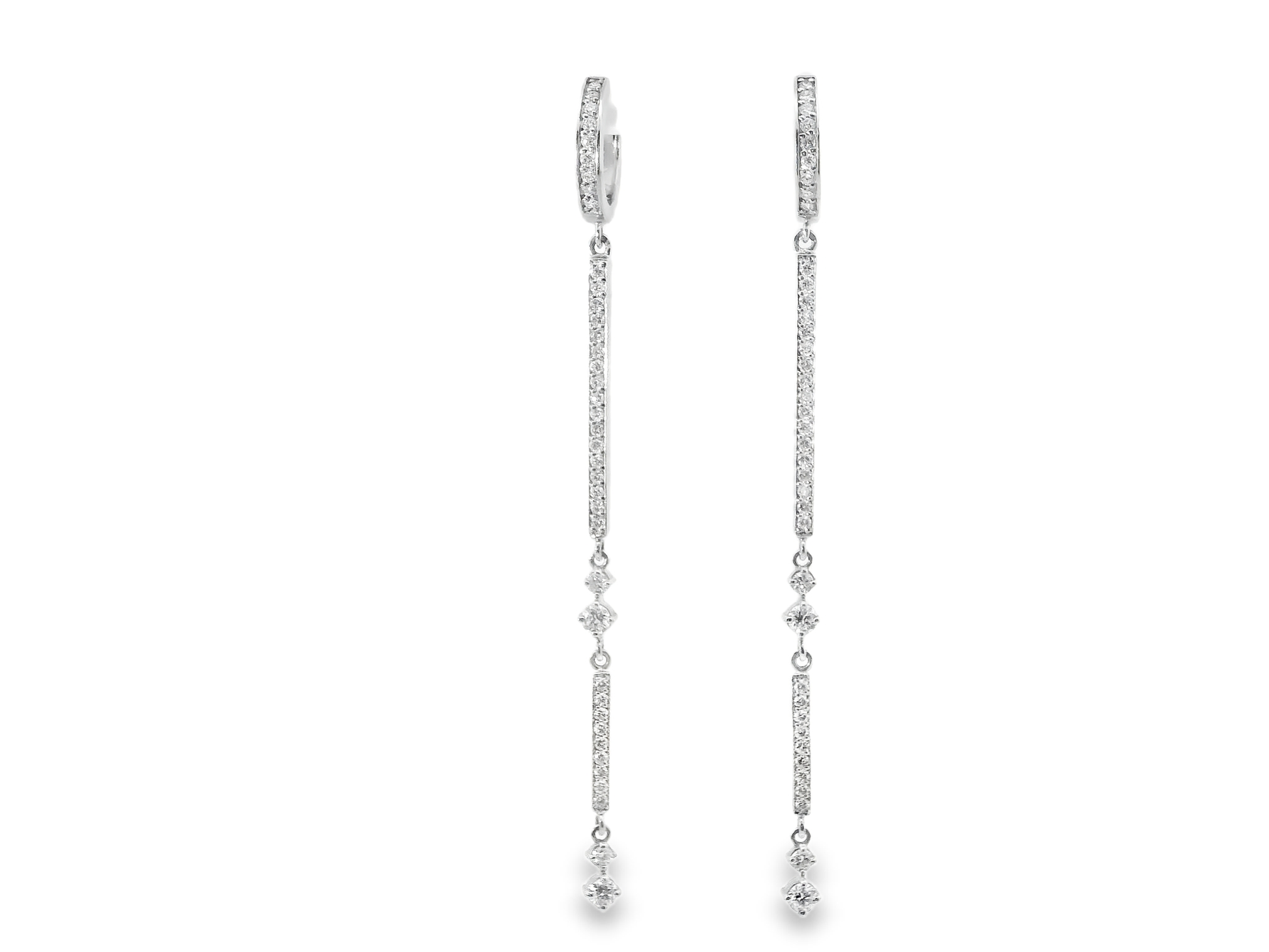 Elevate your style with these expertly crafted 0.83-carat diamond bar earrings set in 14k gold. Designed for lasting brilliance, each earring features precisely cut diamonds that catch the light beautifully, offering a refined and sophisticated look. The durable 14k gold setting ensures both elegance and resilience, making these earrings a timeless addition to any jewelry collection. Perfect for both everyday wear and special occasions, they combine understated luxury with expert craftsmanship.