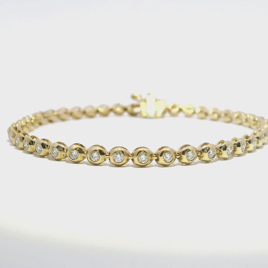 This elegant 0.84CT Diamond Bracelet is expertly crafted in 14k yellow gold. With its dazzling diamonds, this bracelet is sure to add a touch of sophistication to any outfit. Perfect for special occasions or everyday wear, it's a timeless piece that will never go out of style.