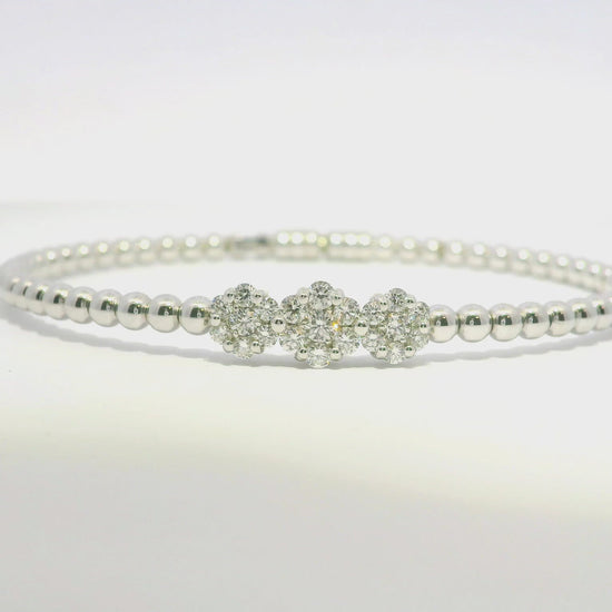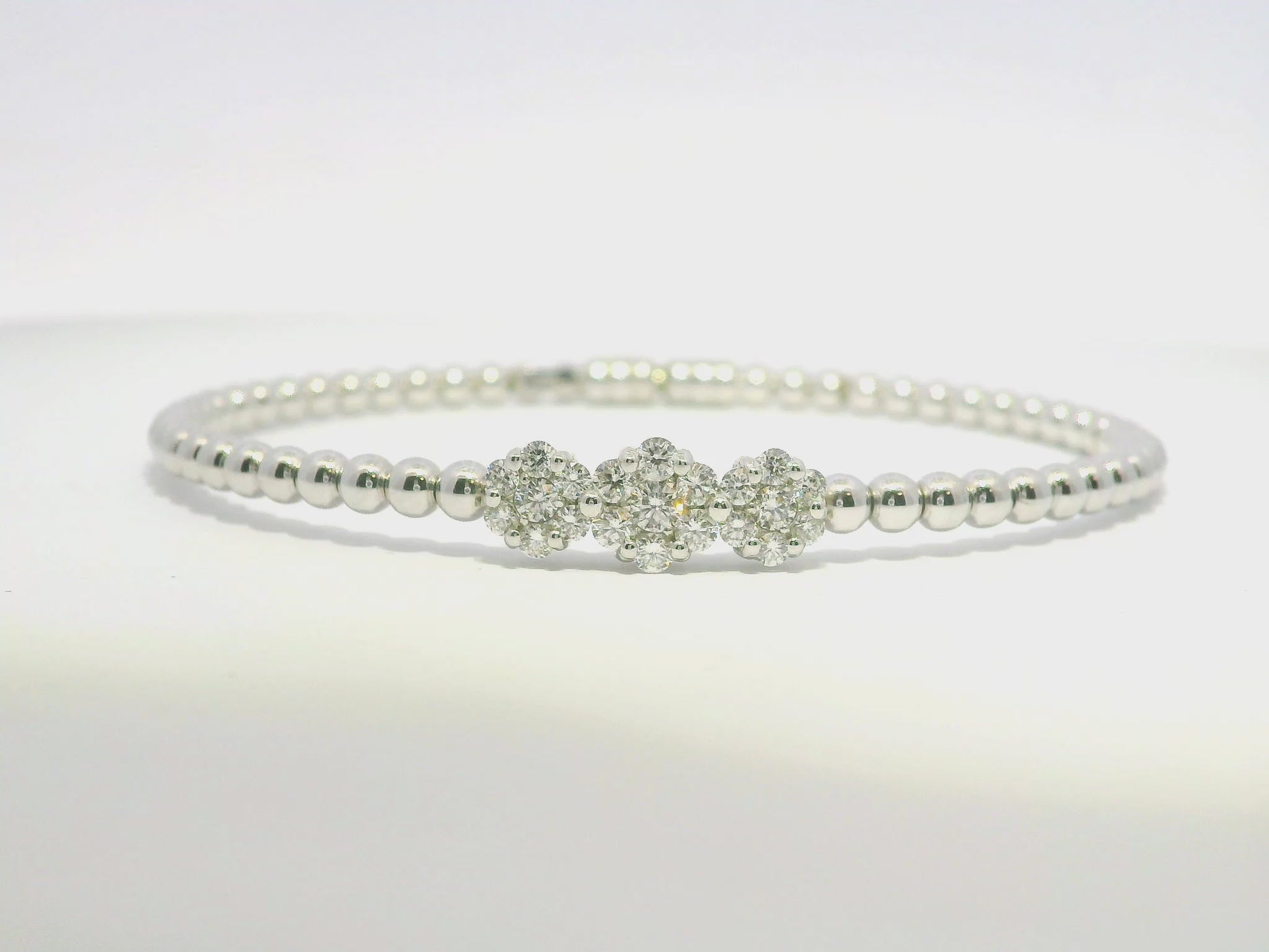 This exquisite 0.85CT diamond bangle is crafted from 18k white gold, exuding a timeless elegance. With its stunning sparkle and luxurious material, this piece is perfect for adding sophistication to any outfit. A must-have for any jewelry collection.