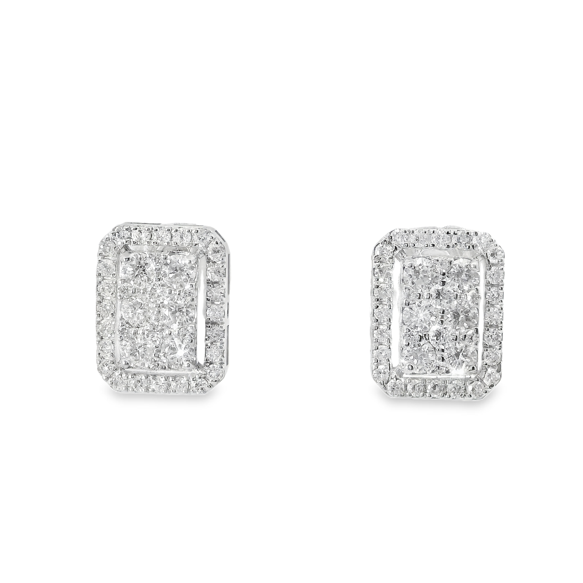 Elevate your elegance with these 0.90 carat diamond earrings set in 14k white gold. Expertly crafted to showcase the brilliance of each diamond, these earrings offer a timeless sparkle that complements any ensemble. The durable 14k white gold setting ensures lasting beauty and comfort for everyday wear or special occasions. Perfect for those seeking refined sophistication and exceptional quality in fine jewelry.