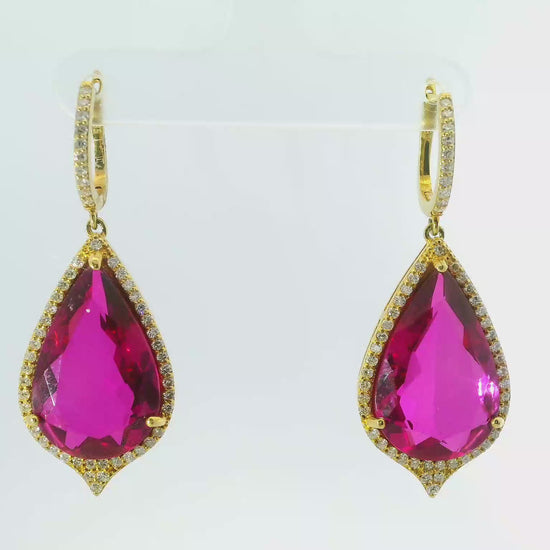 Elevate your elegance with these 0.92CT diamond earrings featuring vibrant rubalite gemstones set in 14k yellow gold. Expertly crafted, they combine the brilliance of diamonds with the rich, deep hues of rubalite, offering a sophisticated and timeless accessory perfect for both formal occasions and everyday luxury.