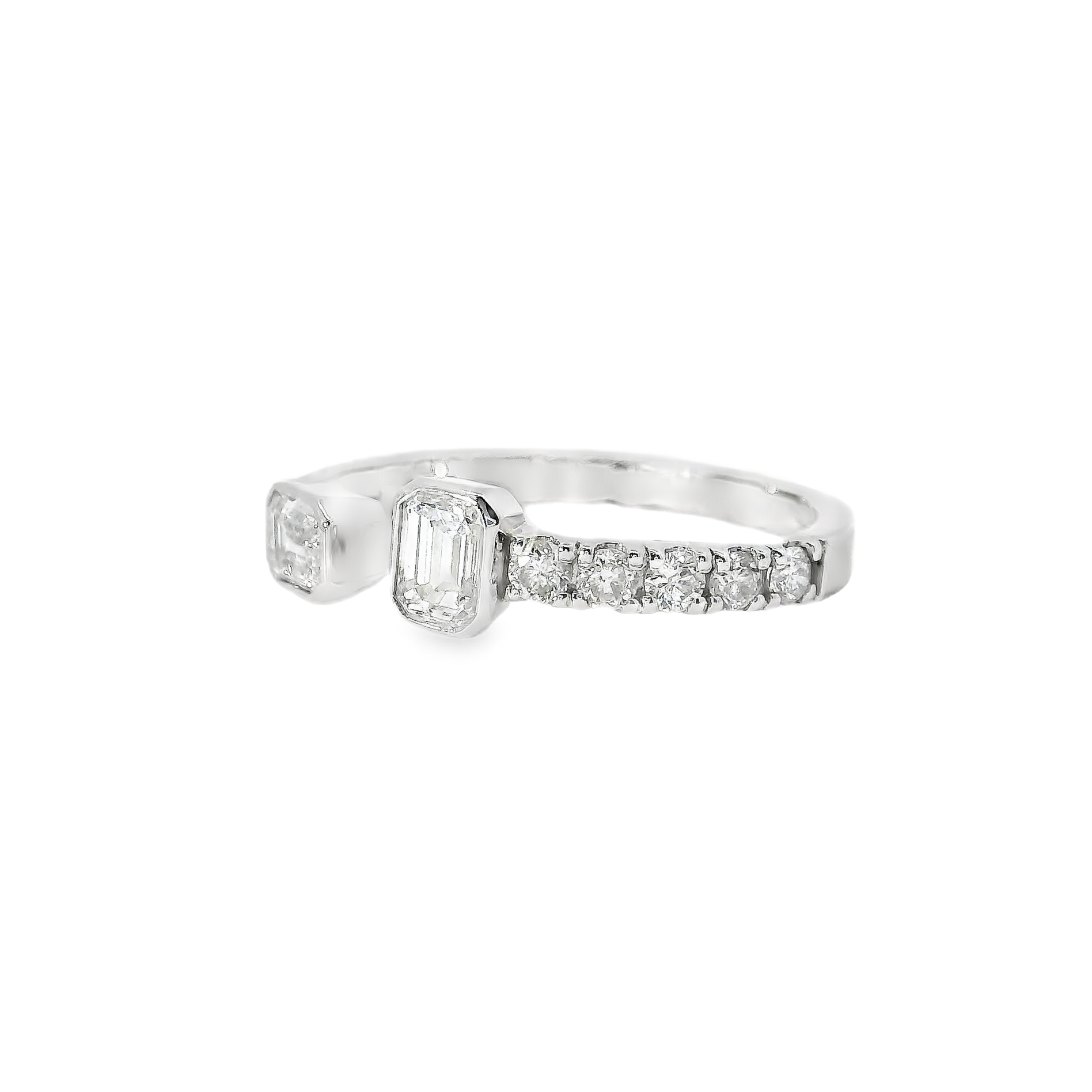 Elevate your style with our 0.92CT Emerald and Round Cut Diamond Ring. Made of 18k gold, this ring features a sparkling emerald and round cut diamonds for a luxurious and timeless look. Add this stunning piece to your jewelry collection for a touch of elegance.