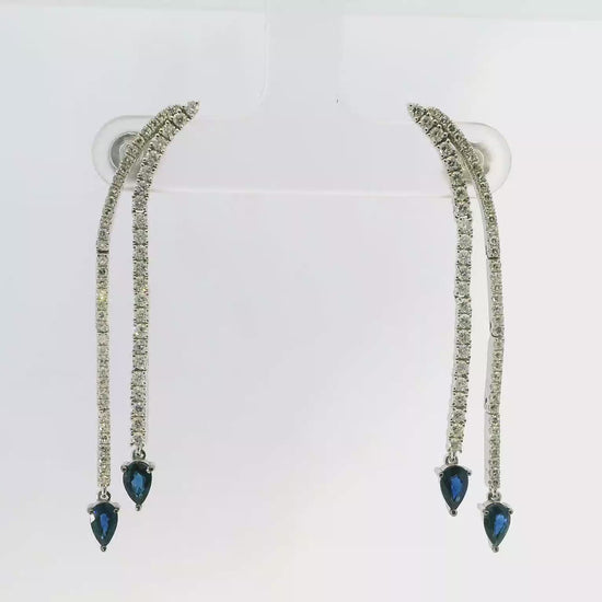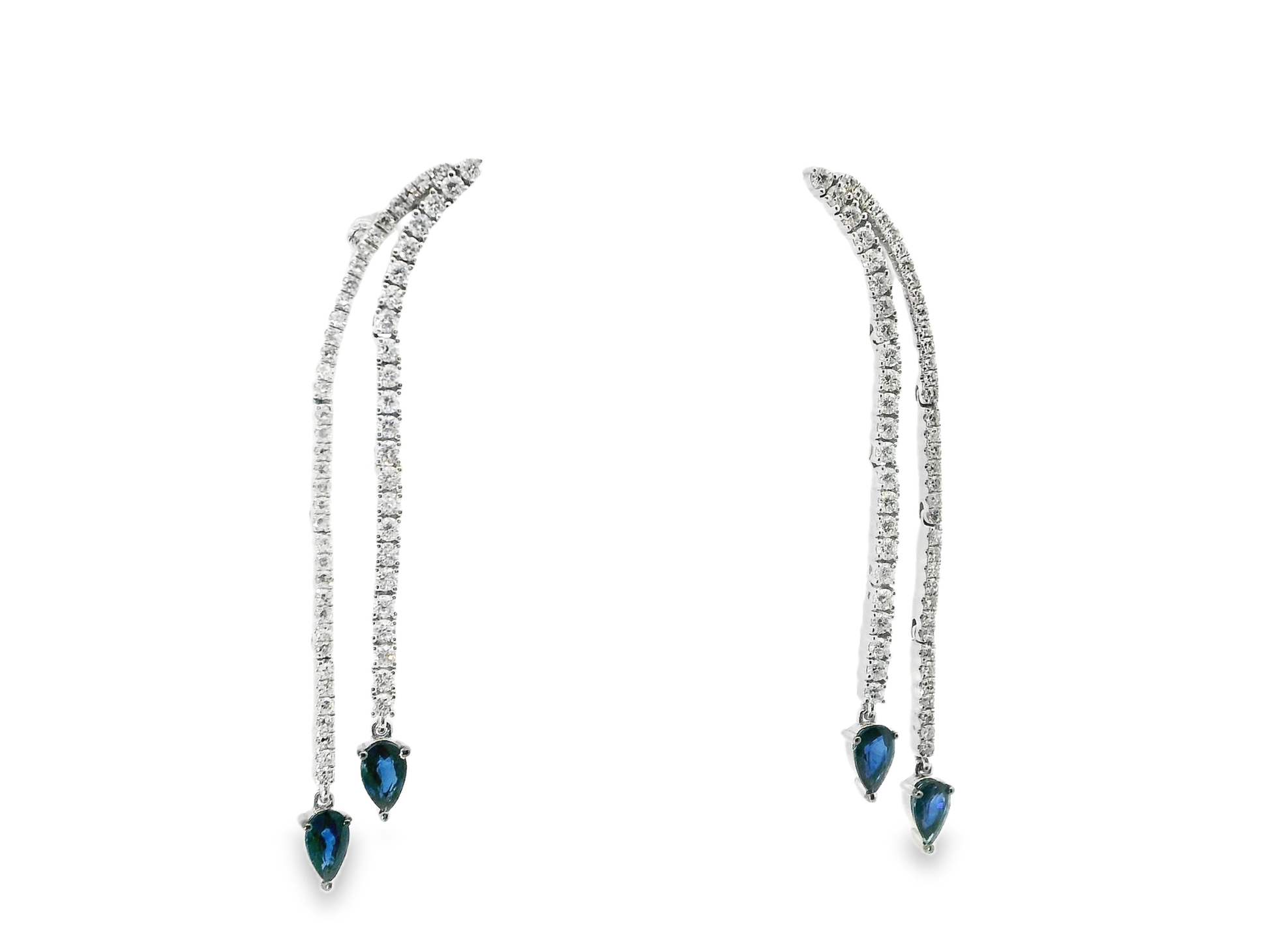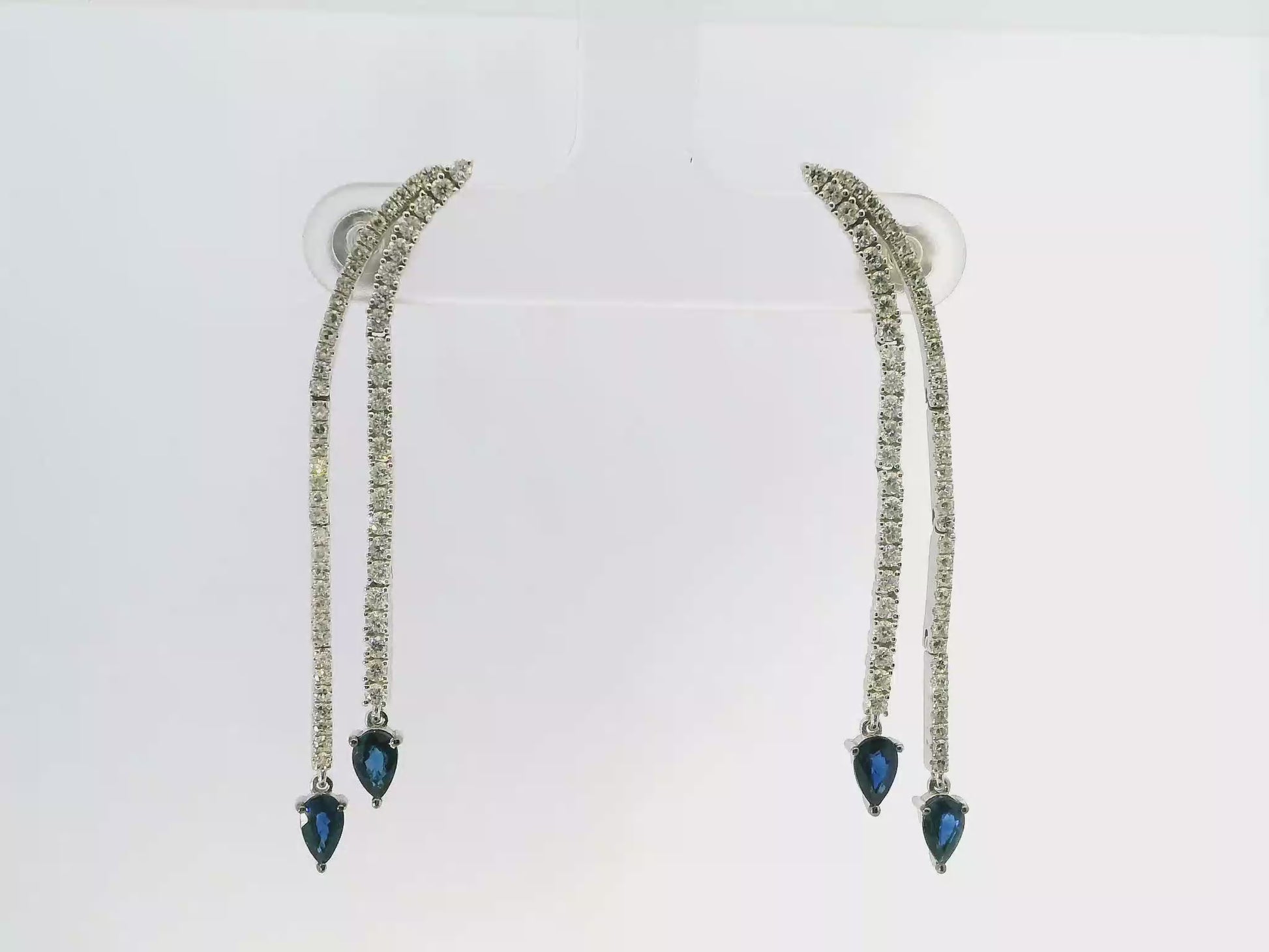 0.98CT Diamond 1.02CT Blue Sapphire 14k White Gold Earring