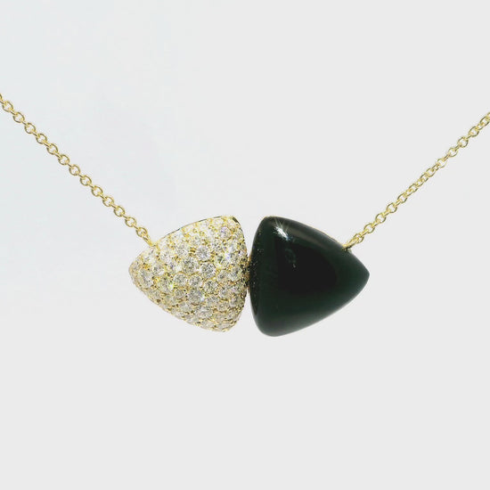 0.98CT Diamond Pendant with Black Onyx 14k Yellow Gold