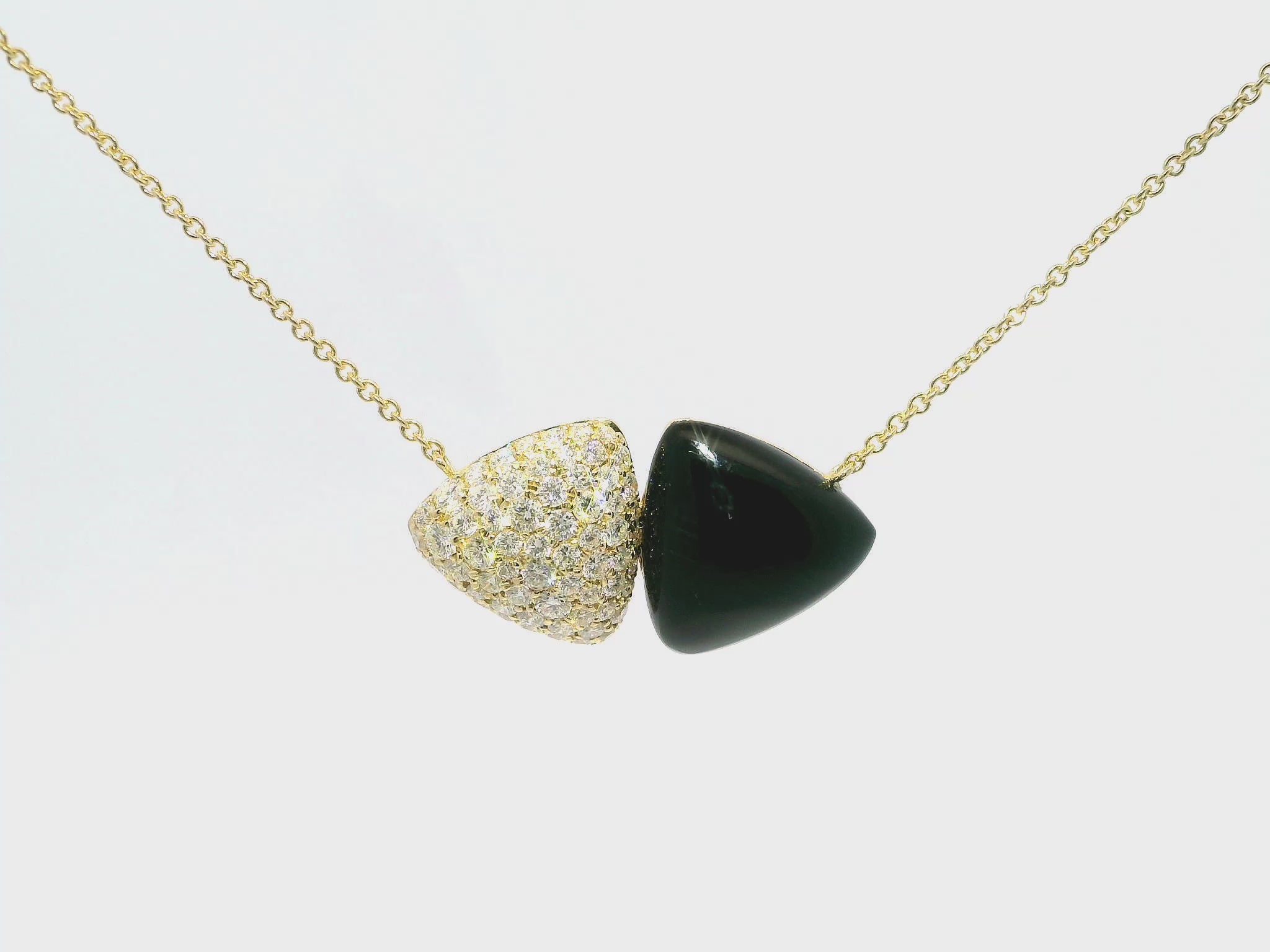 Elevate your jewelry collection with this exquisite 0.98CT Diamond Pendant, featuring a stunning combination of black onyx and 14k yellow gold. The contrast between the deep black onyx and the sparkling diamonds adds a touch of elegance and sophistication to any outfit. Crafted with precision and quality, this pendant is a must-have for any fashion-forward individual.