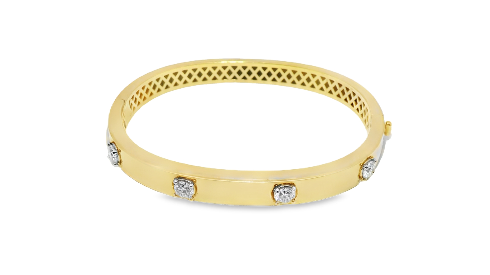Enhance your elegance with our 0.99CT Diamond Bangle in 18k Yellow Gold. The stunning bangle features 0.99 carats of sparkling diamonds set in luxurious 18k yellow gold. Elevate your style with this exquisite piece.